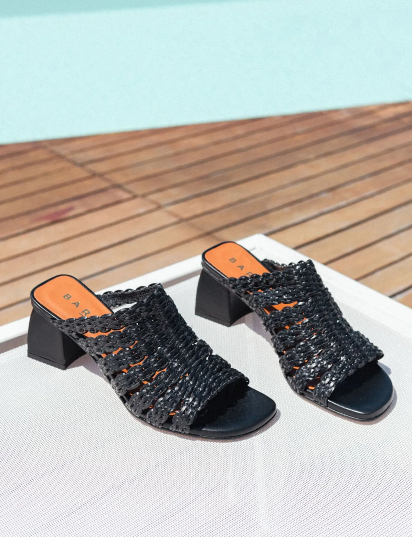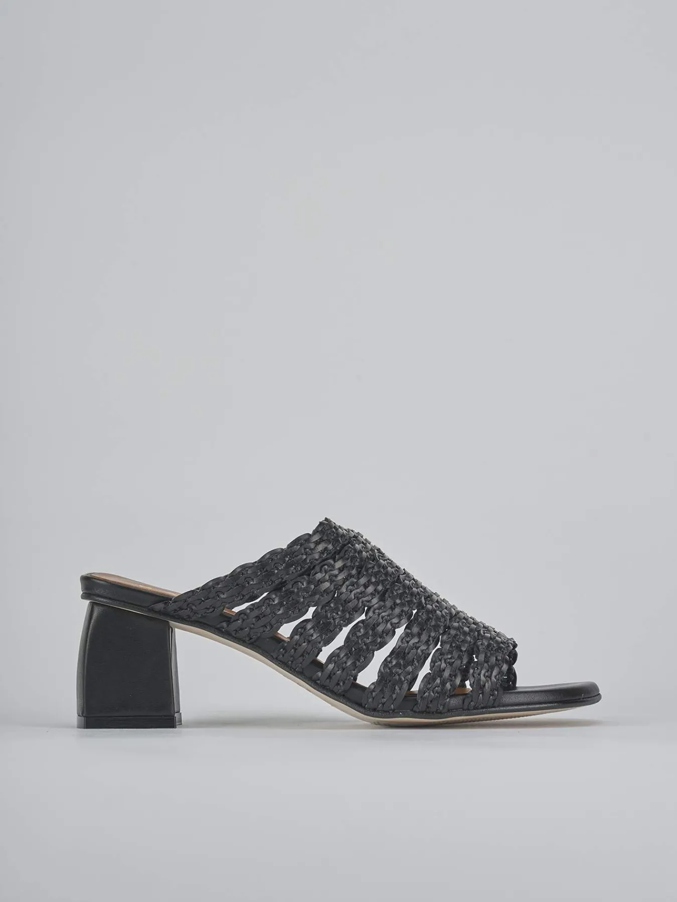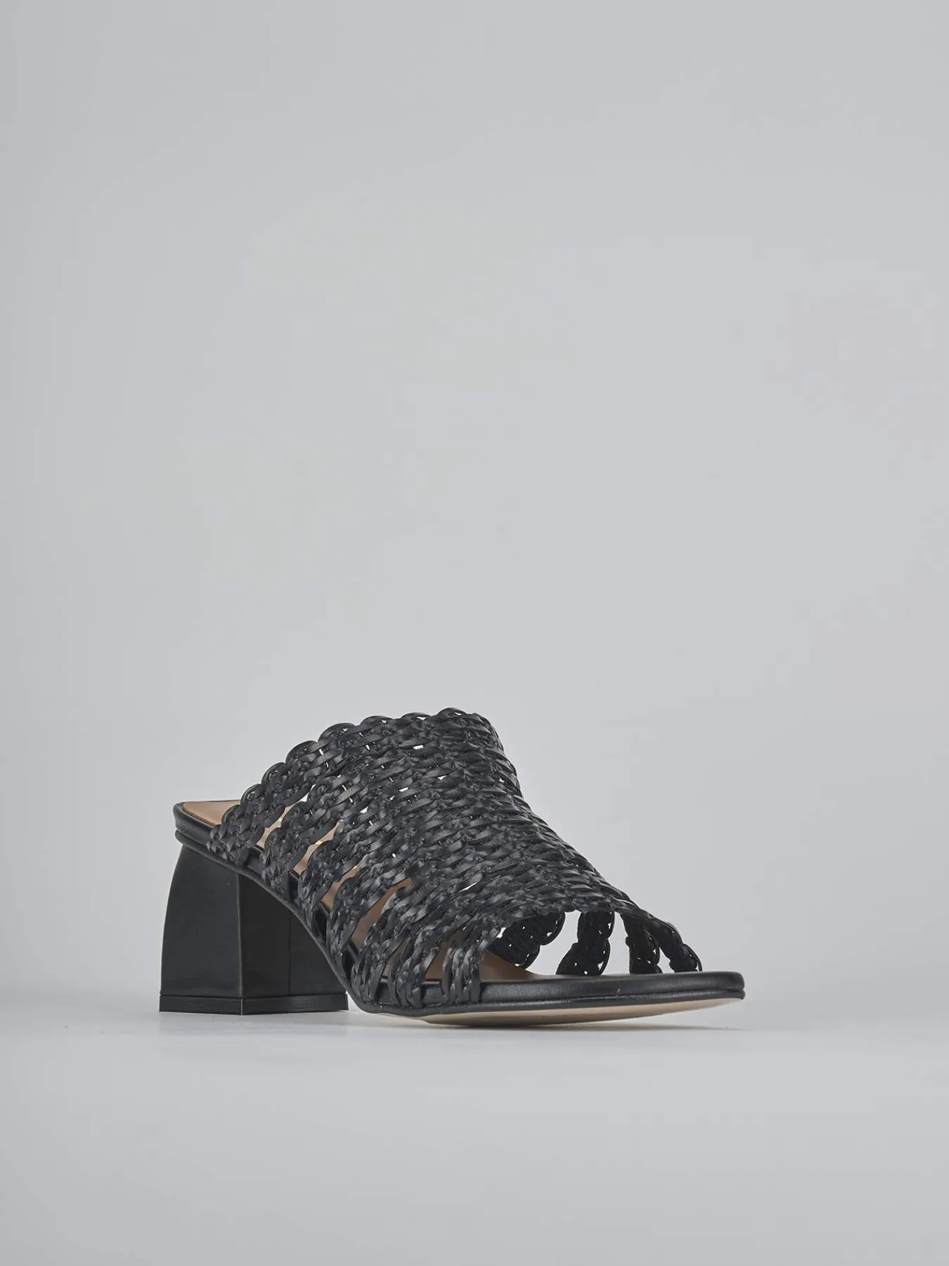 Ciabatta tacco 5 cm fondo in leggera gomma e soletto interno in vera pelle. Tomaia in morbida pelle finemente intrecciata, punta leggermente squadrata, sette fasce e tacco grosso. Perfetto con ogni tuo outfit.