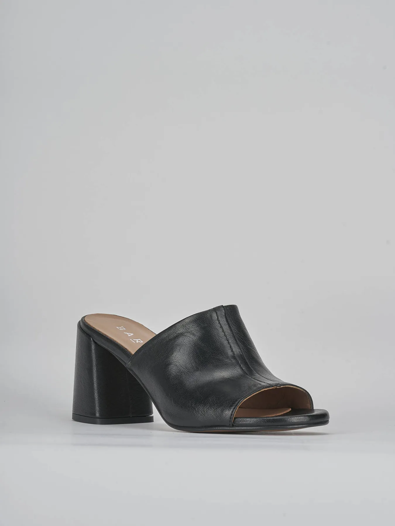 Sabot tacco 7 cm fondo in cuoio e soletto interno in vera pelle. Tomaia in morbida pelle, punta leggermente squadrata, fascia unica con cuciture a vista a mano e tacco grosso. Perfetto per la tua estate italiana.