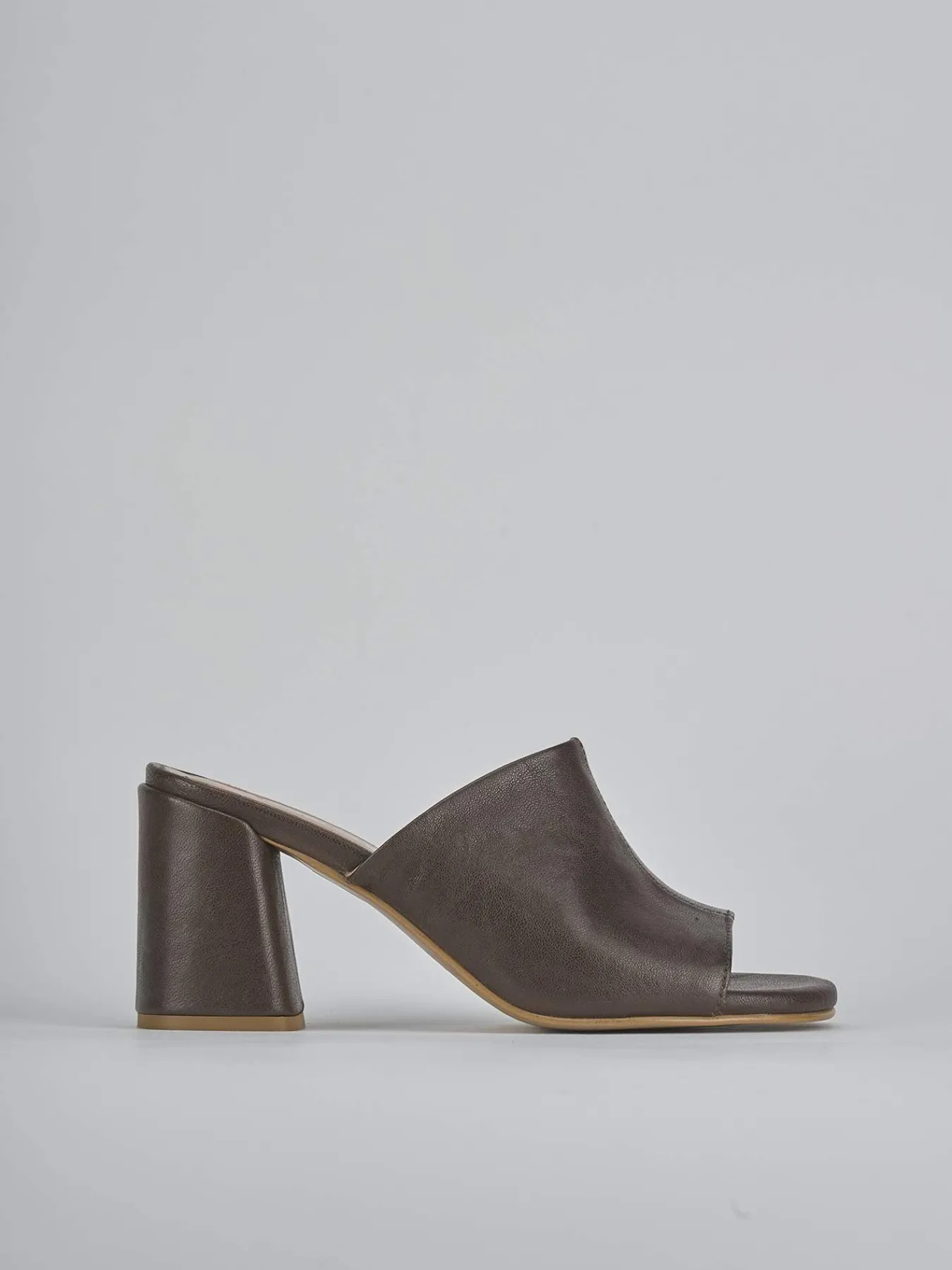 Ciabatta tacco 7 cm fondo in leggerissima gomma e soletto interno in vera pelle. Tomaia in morbida pelle, punta leggermente squadrata, fascia unica con cuciture a vista a mano e tacco grosso. Perfetto per la tua estate italiana.