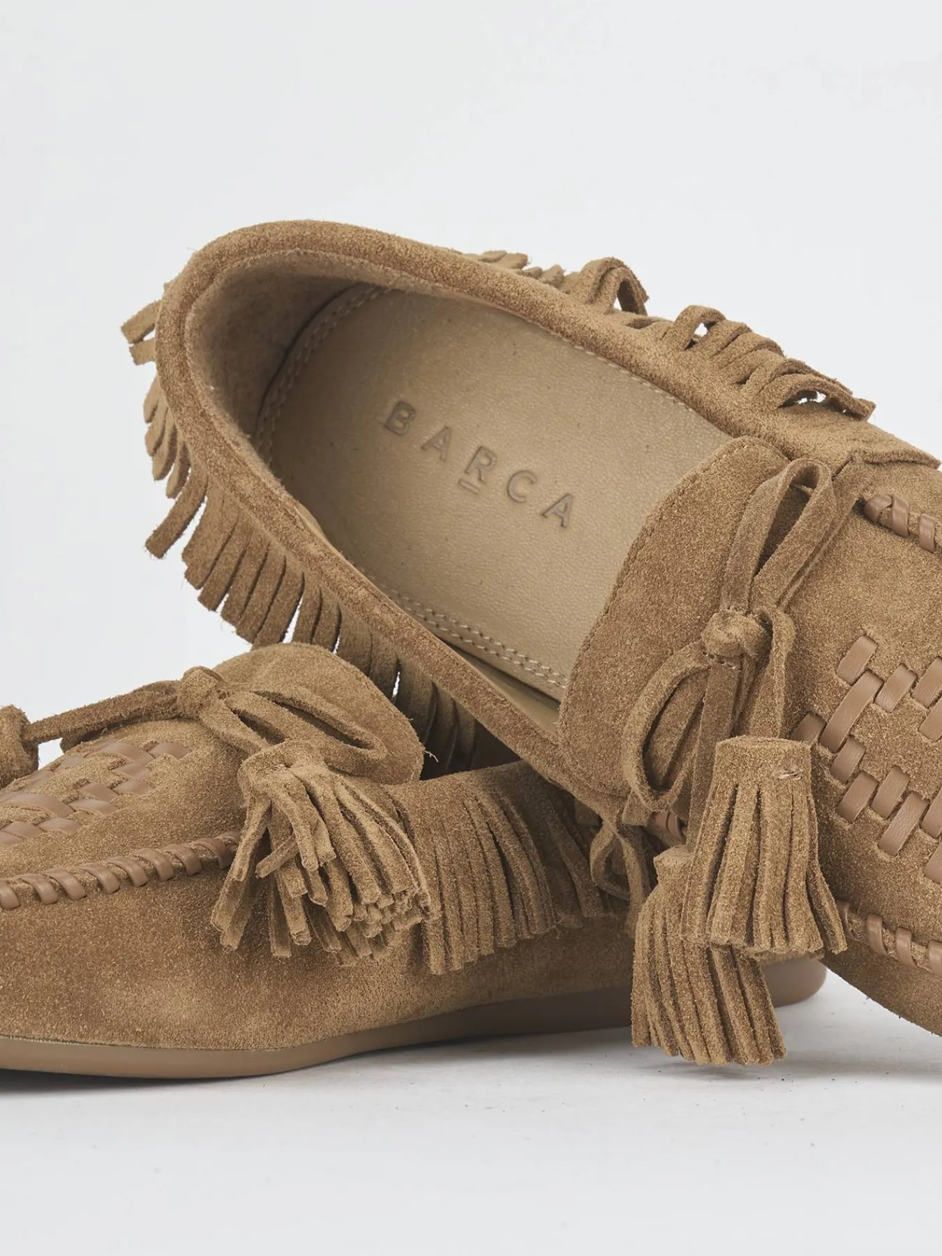 Il materiale in camoscio dona un tocco di classe e morbidezza al tatto, mentre le frange decorative aggiungono un elemento di stile unico.