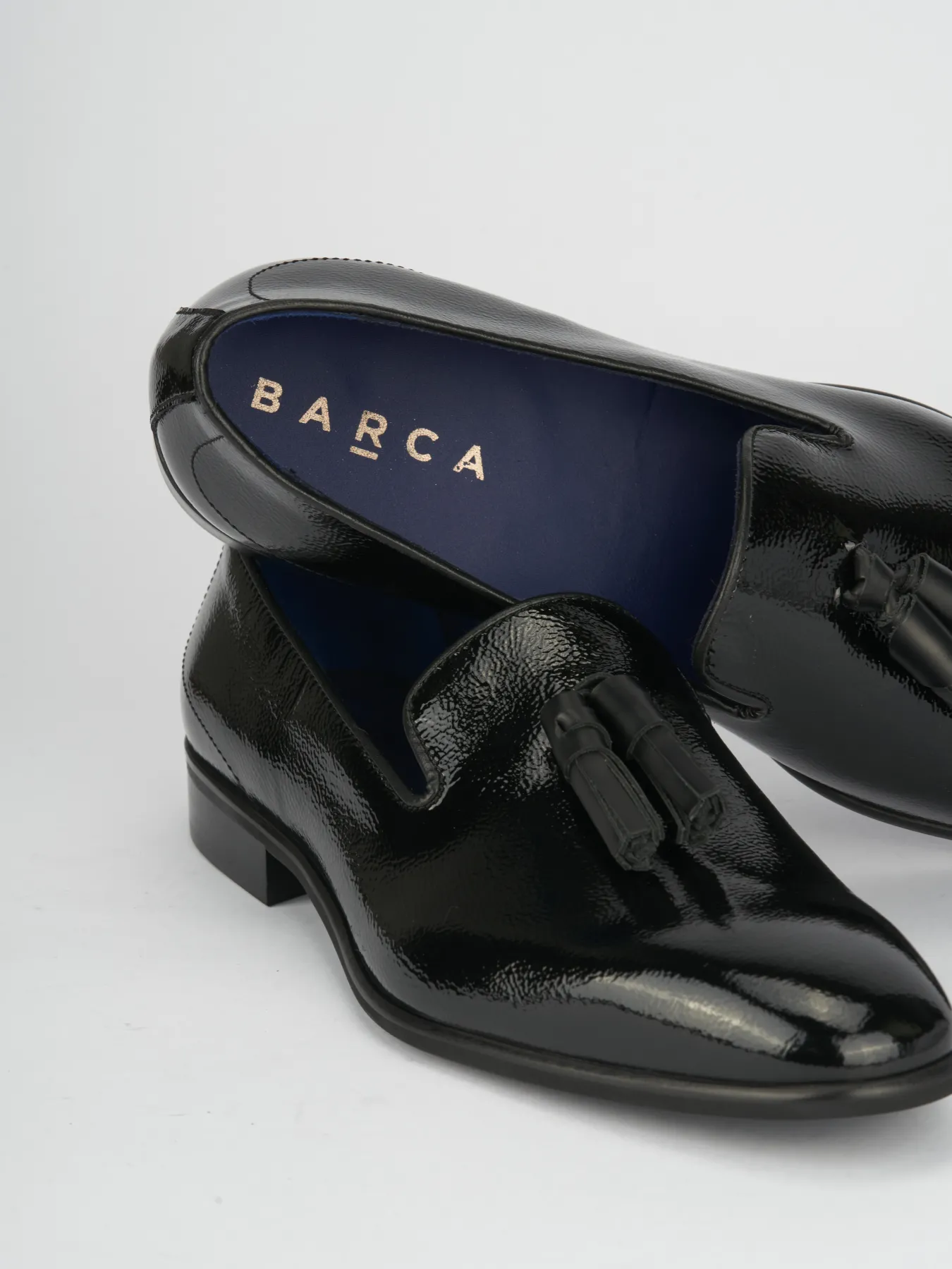 La tomaia in morbida pelle verniciata dona un aspetto raffinato, arricchito da nappine che aggiungono un tocco di classe.
