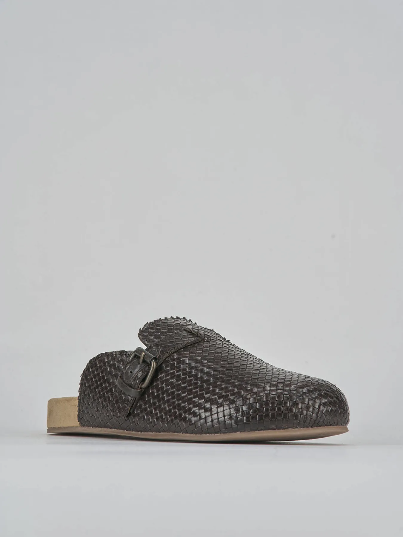 La tomaia è realizzata in morbida pelle intrecciata, con una punta affusolata che aggiunge un tocco elegante e moderno.