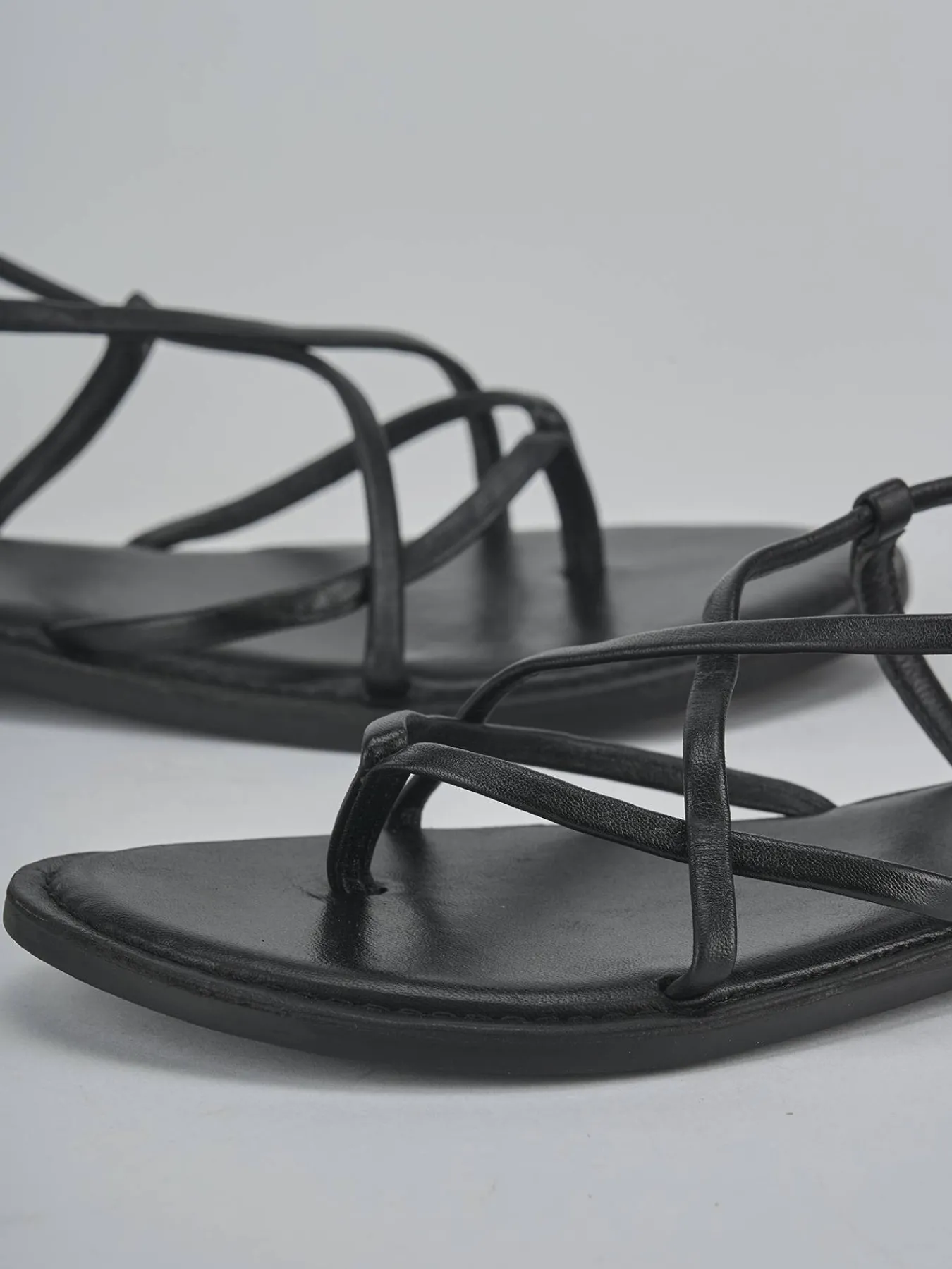 La tomaia è realizzata in morbida pelle nera, con fascette incrociate che donano un tocco sofisticato.