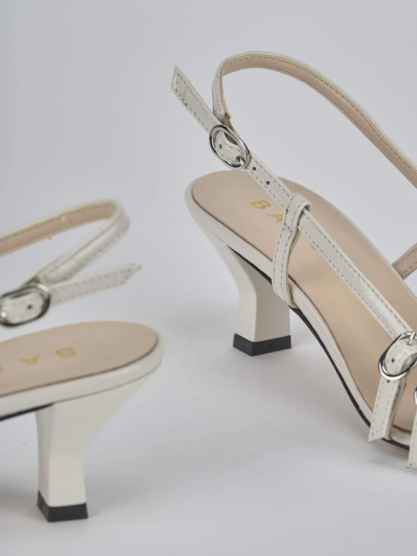Slingback decolte’ tacco 6 cm fondo in cuoio e soletto interno in vera pelle. Tomaia in morbida pelle effetto verniciato, punta sfilata, puntale, due cinturini con fibbia regolabile sul collo del piede e cinturino sul tallone e comodo tacco geometrico. Perfetto sia con dei jeans sia con un vestito.