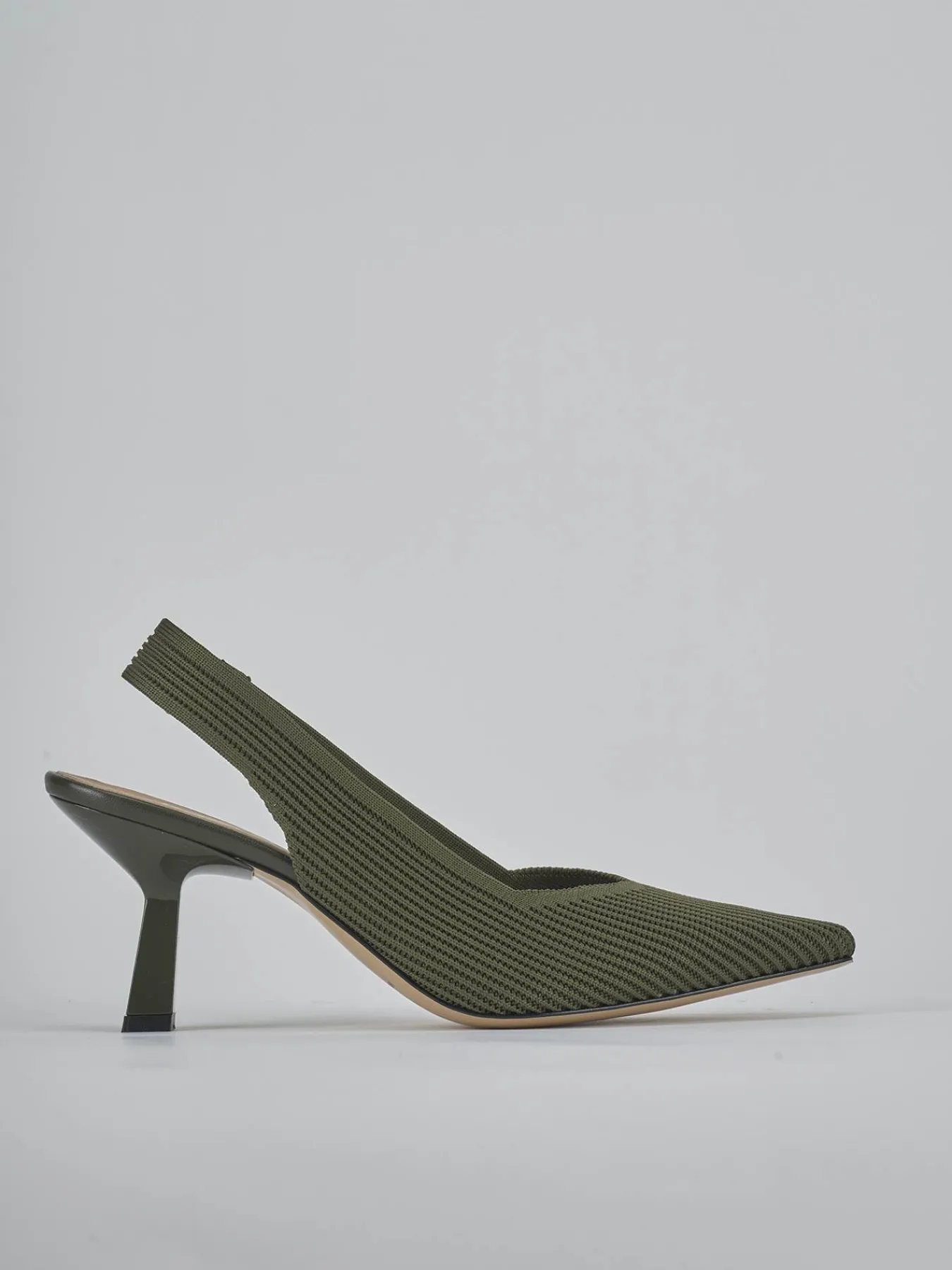 Slingback decolte’ tacco 7 cm fondo in leggerissima gomma e soletto interno in vera pelle. Tomaia in morbida pelle foderata in tessuto, punta sfilata, scollo cool, cinturino elasticizzato e spesso che avvolge il tallone e nuovissimo tacco rocchetto in ABS per un look che non ti farà passare inosservata.