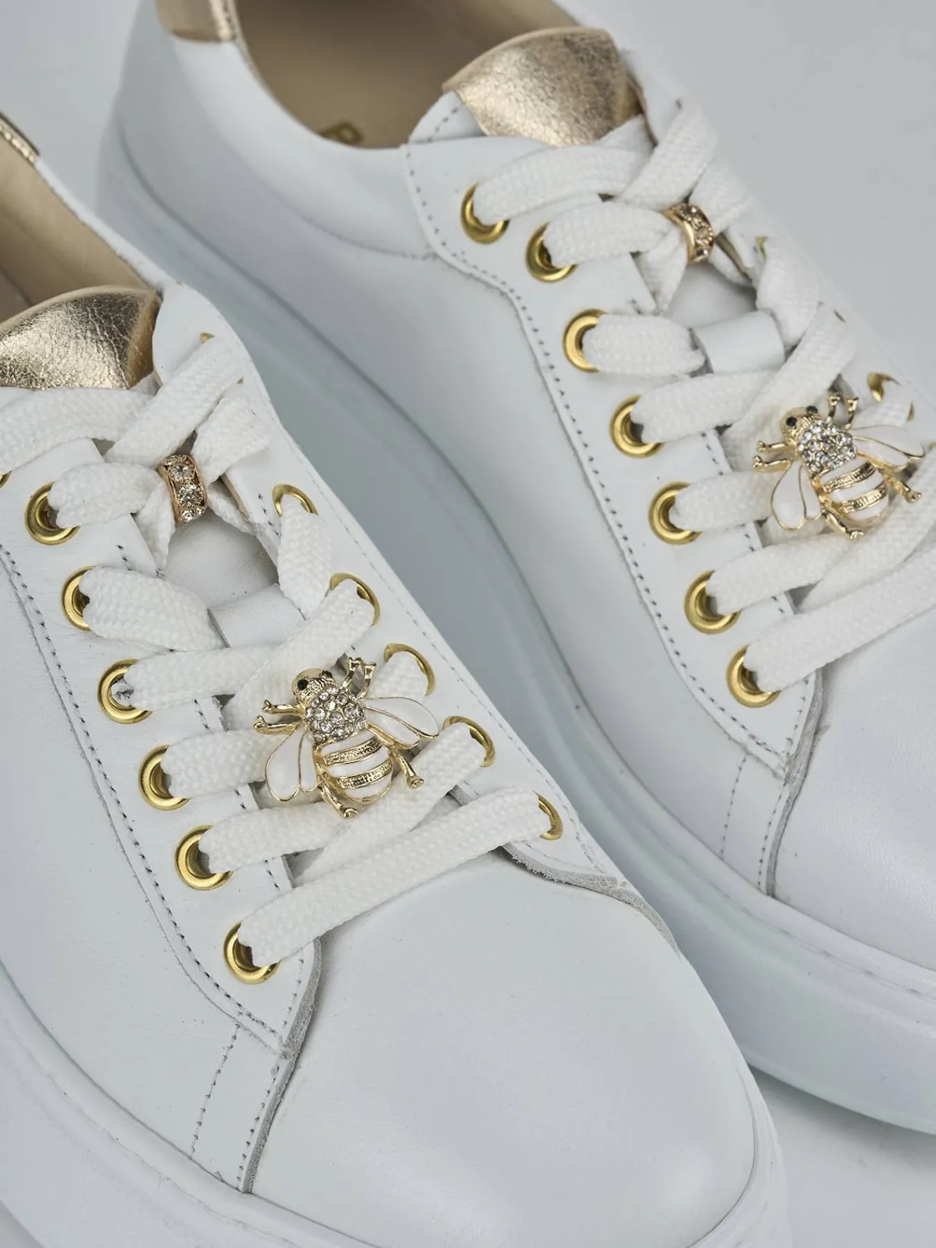 I lacci attraversano occhielli in metallo, aggiungendo una nota di brillantezza.