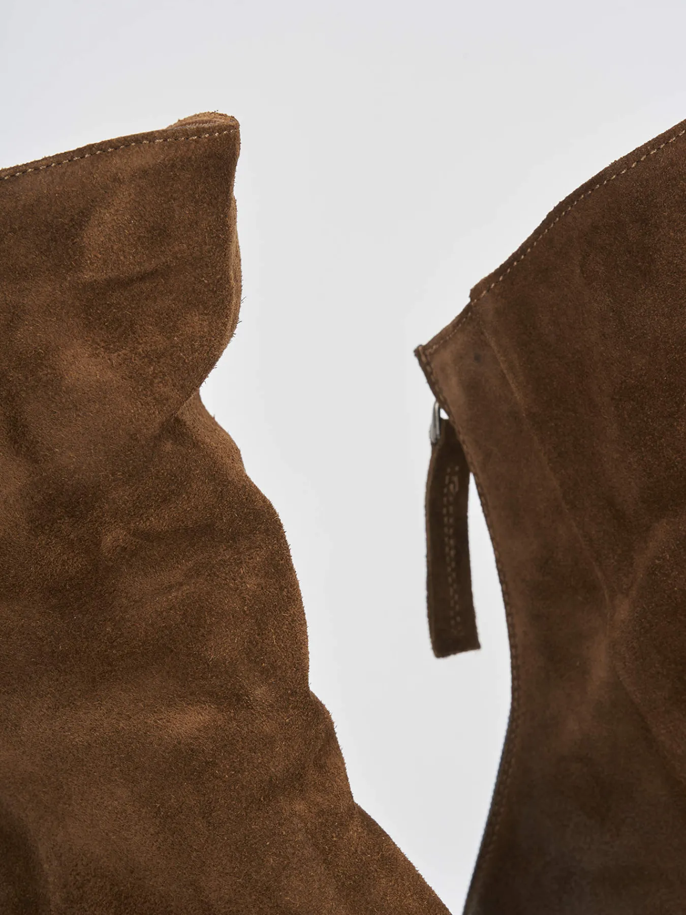 Tronchetto tacco 2 cm fondo in gomma e soletto interno in vera pelle. Tomaia in morbido camoscio, punta tonda, comoda cerniera posteriore e gambale leggermente più alto davanti per un look cool.
