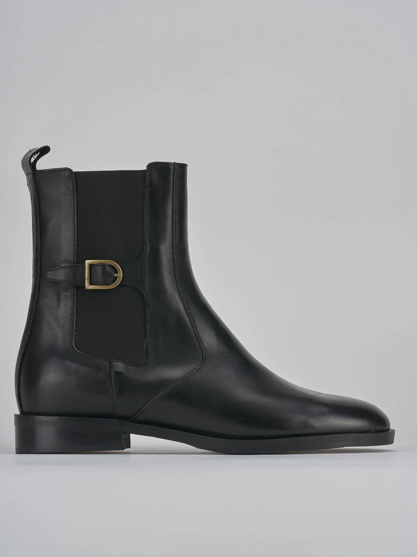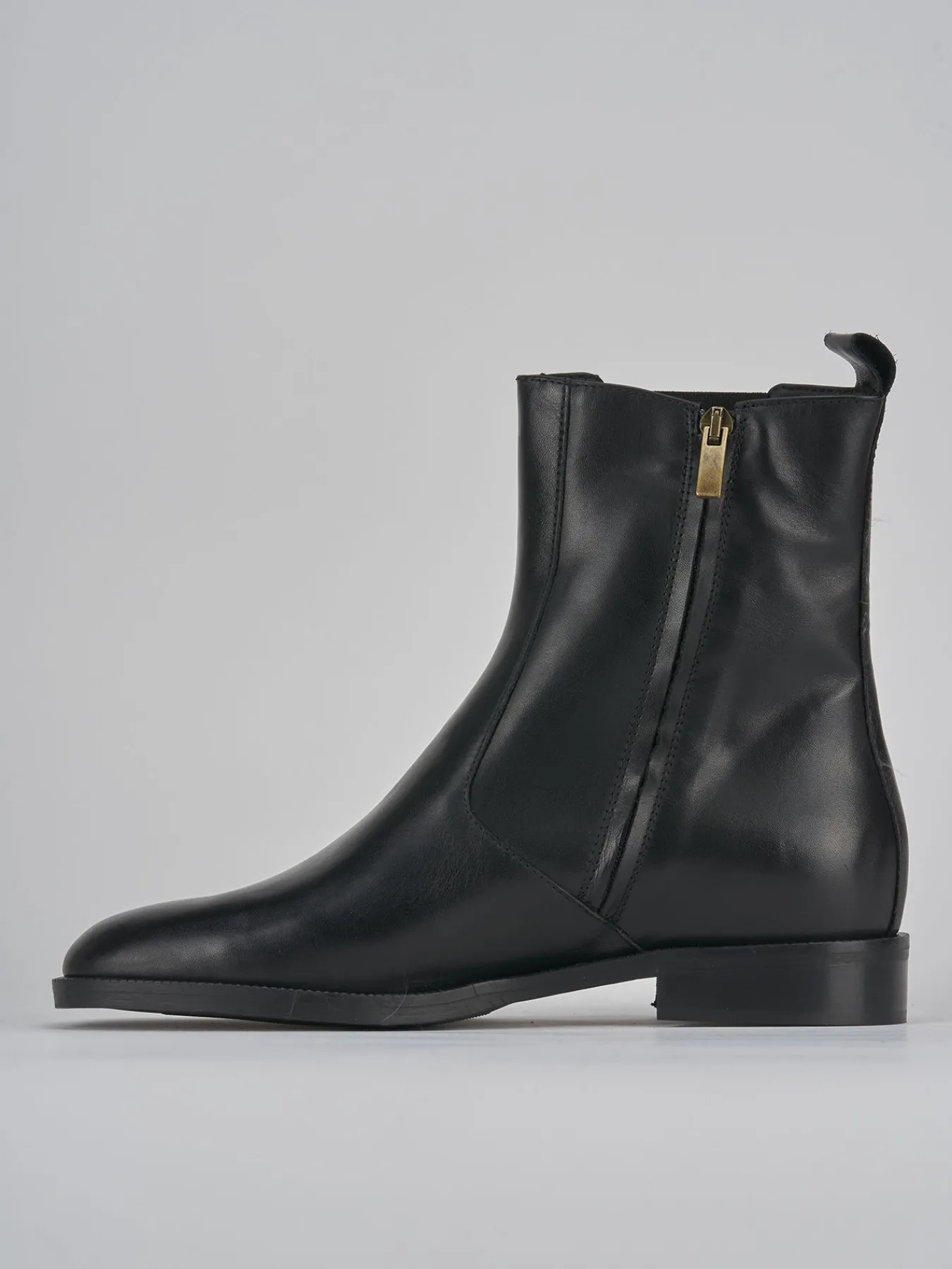 Stivaletto tacco 2 cm fondo in gomma e soletto interno in vera pelle. Tomaia in morbida pelle, punta affusolata, cerniera laterale, tessuto elasticizzato con fibbia per un look cool.