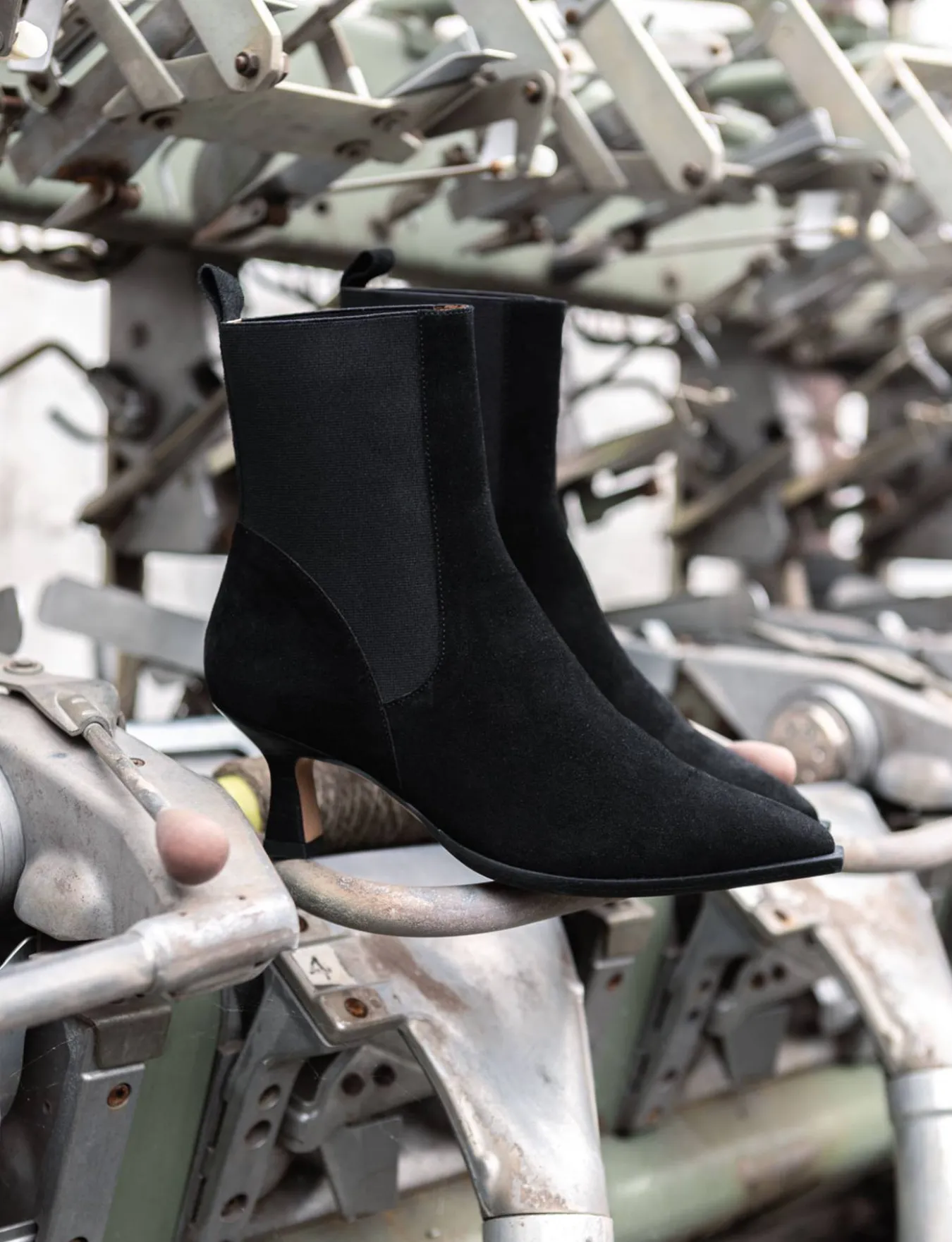 Realizzati in morbida pelle scamosciata, questi stivaletti presentano una punta sfilata e cuciture visibili che aggiungono un dettaglio sofisticato.