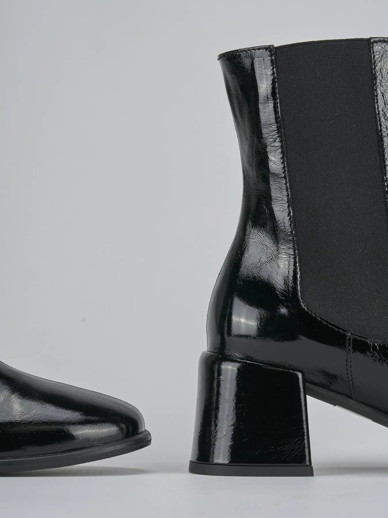 La tomaia in morbida pelle effetto verniciato dona un tocco di lucentezza chic, mentre la punta affusolata aggiunge un dettaglio raffinato.