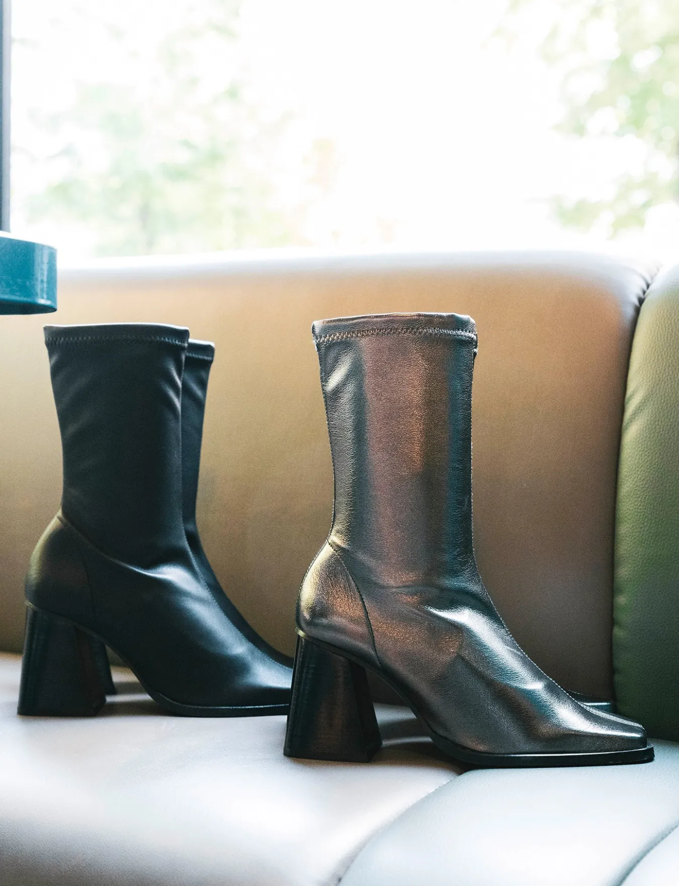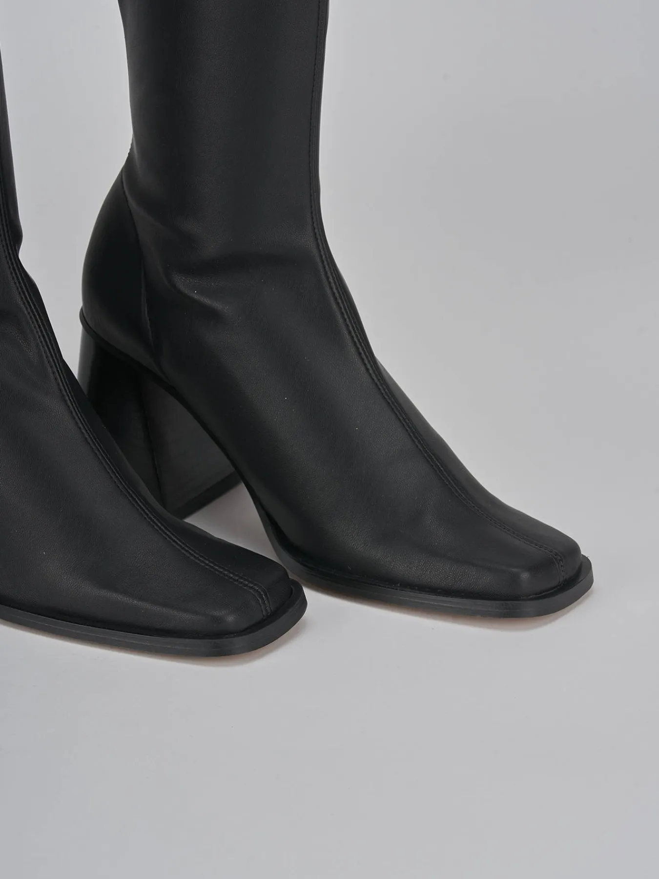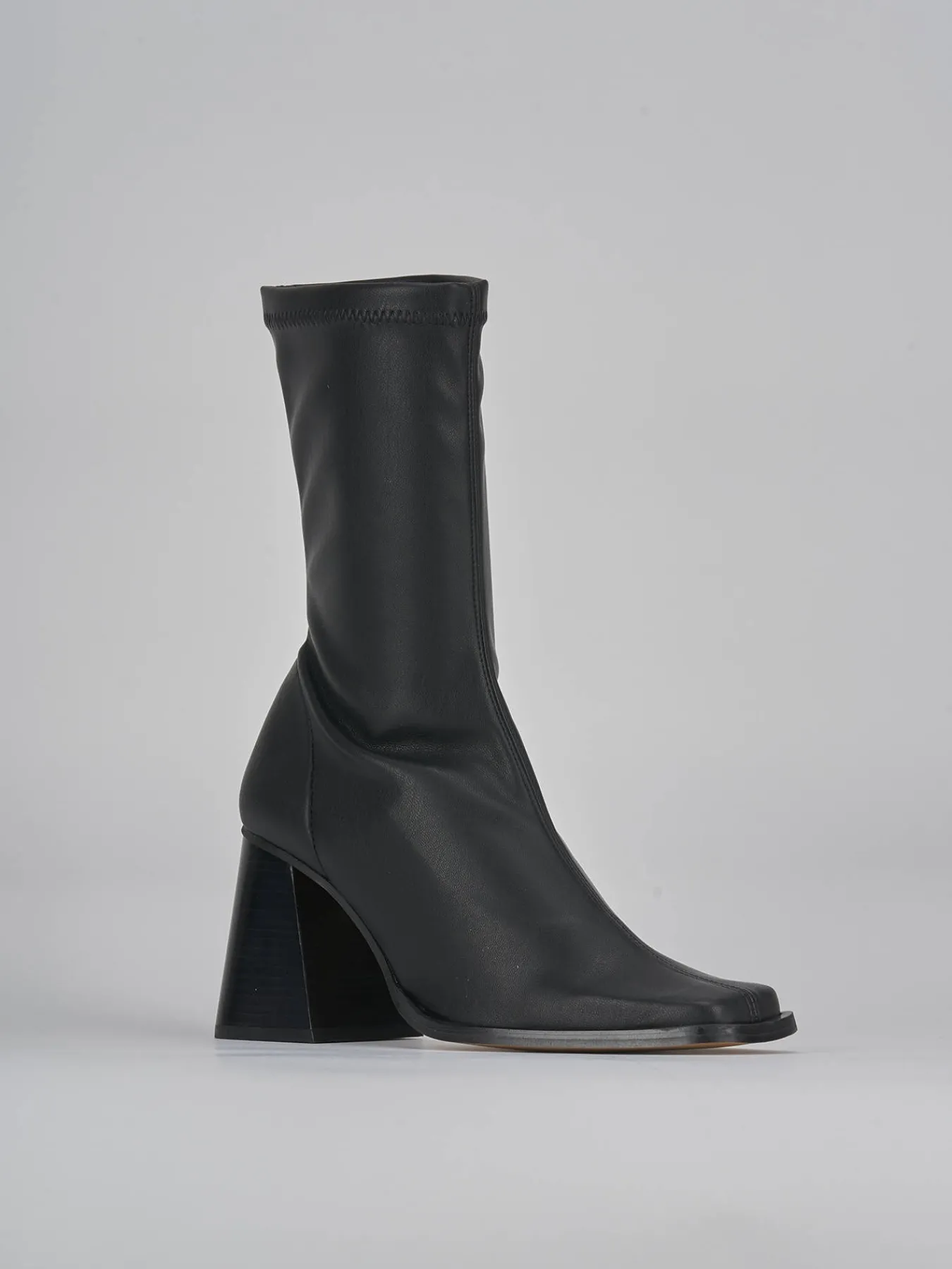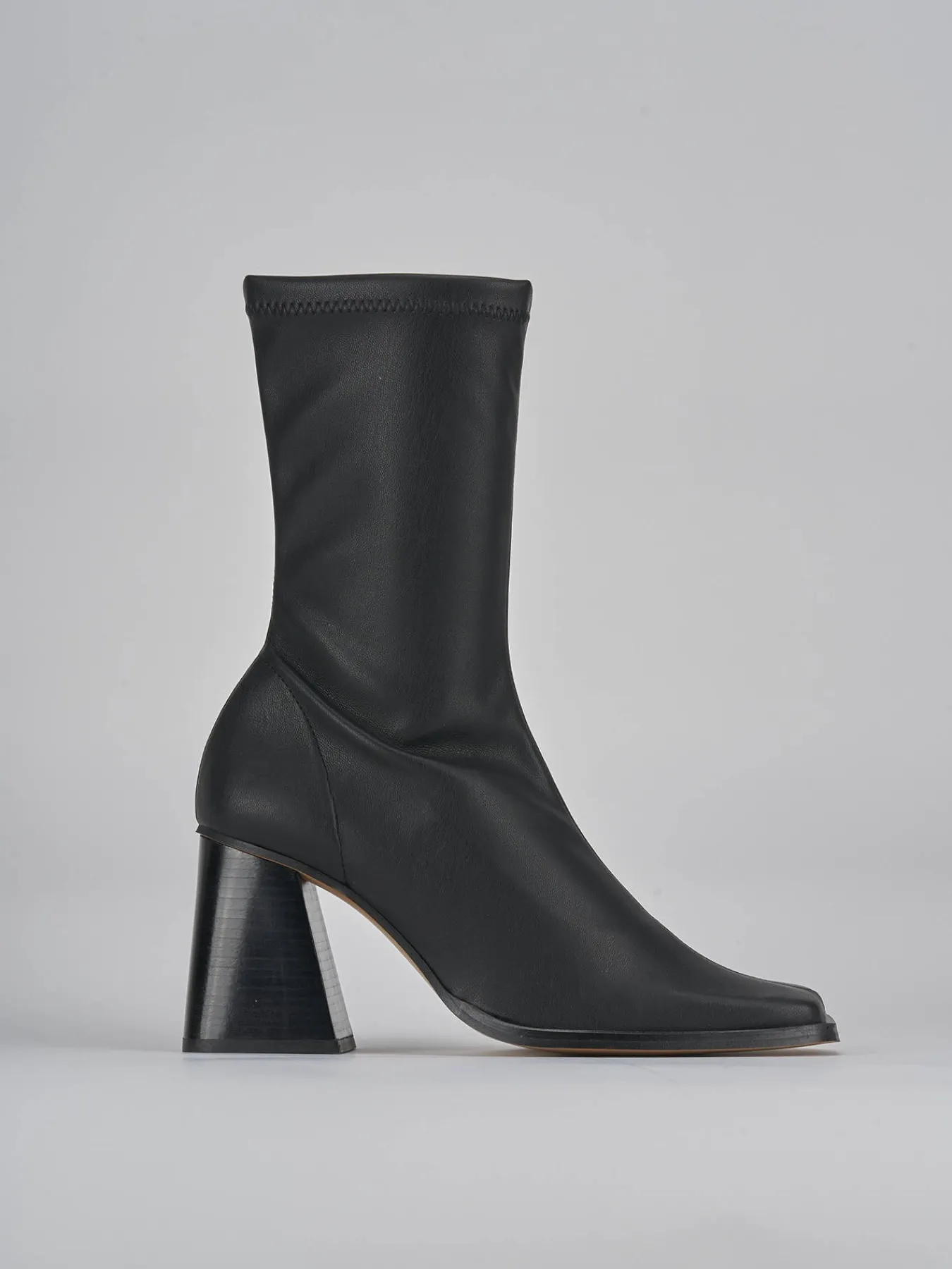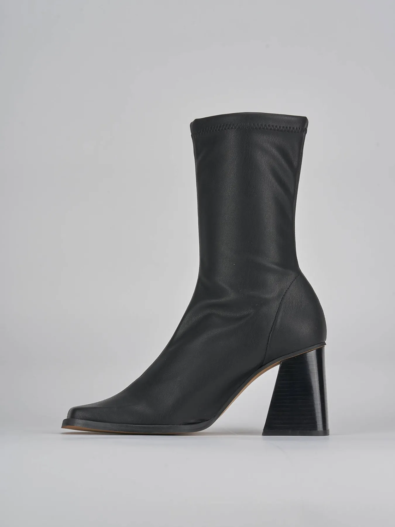 tronchetto tacco 7 cm fondo in gomma e soletto interno in vera pelle. tomaia in morbida pelle, punta squadrata, cuciture a vista, gambale elasticizzato per il massimo del comfort. tacco grosso e guardolo sporgente per un look chic.