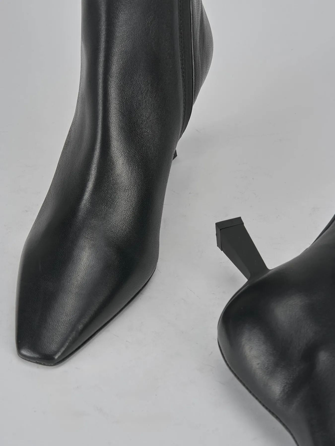 La punta sfilata ma squadrata, insieme alle cuciture a mano, dona un carattere deciso e moderno al design.