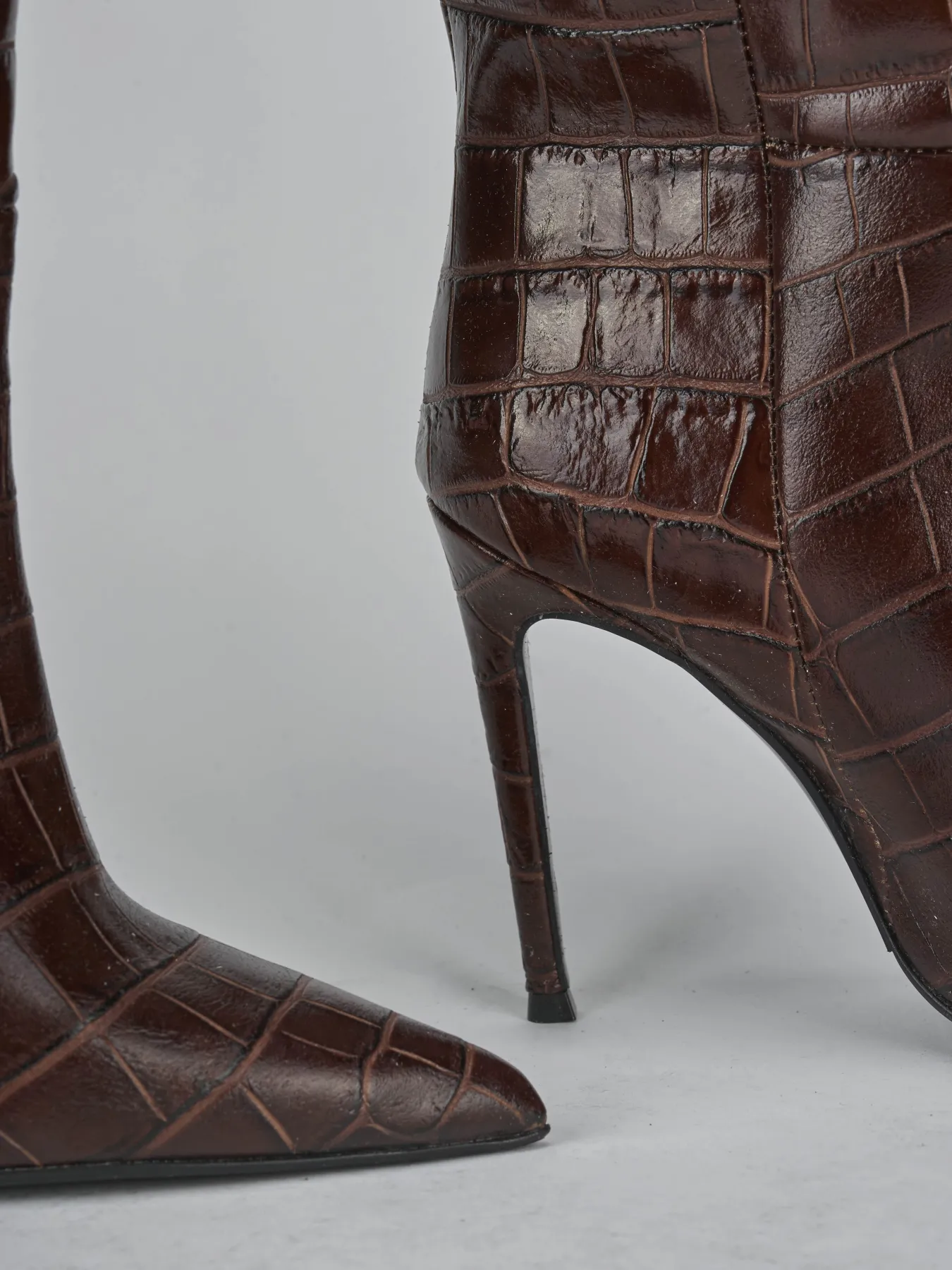 Il design con punta sfilata e cuciture visibili offre un look moderno e sofisticato.