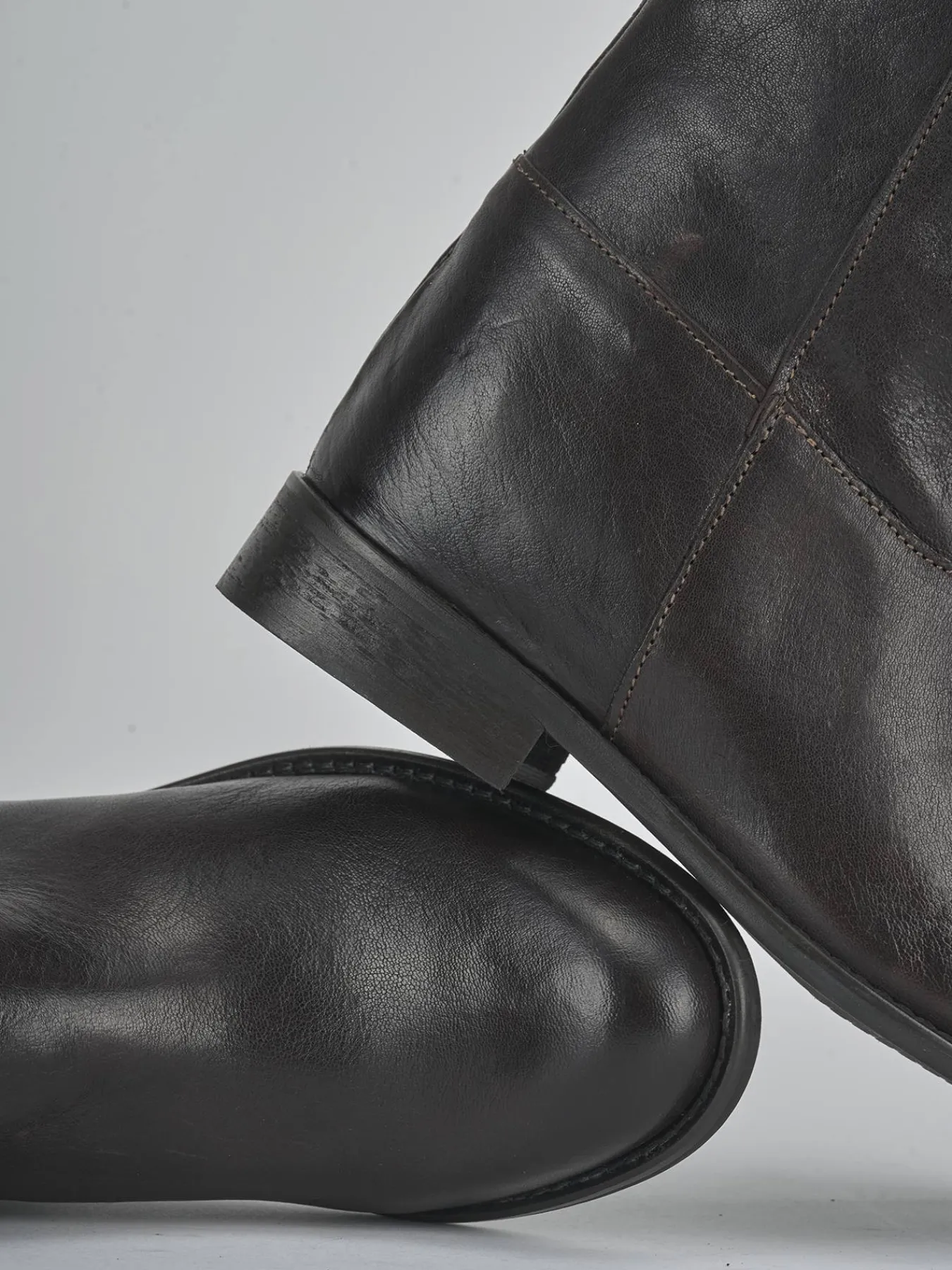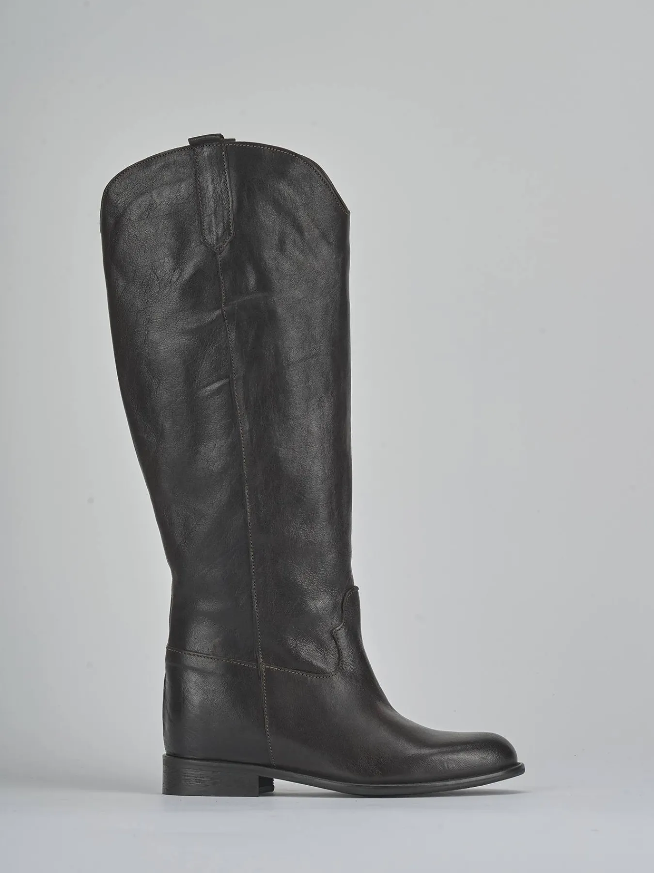 La tomaia in morbida pelle avvolge il piede con una punta affusolata, mentre le cuciture sul gambale, che arriva appena sotto il ginocchio, aggiungono un tocco di sofisticatezza.