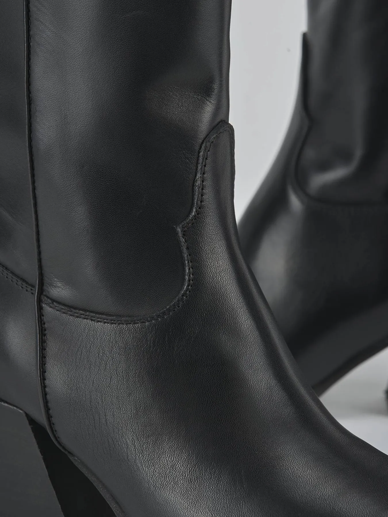 Stivale tacco 6 cm fondo in leggera gomma e soletto interno in vera pelle. Tomaia in morbida pelle, punta sfilata, ghette che mantengono la forma del gambale che misura 3/4 del polpaccio e tacco cubano per un look cool. Perfetto e versatile con ogni tuo look.