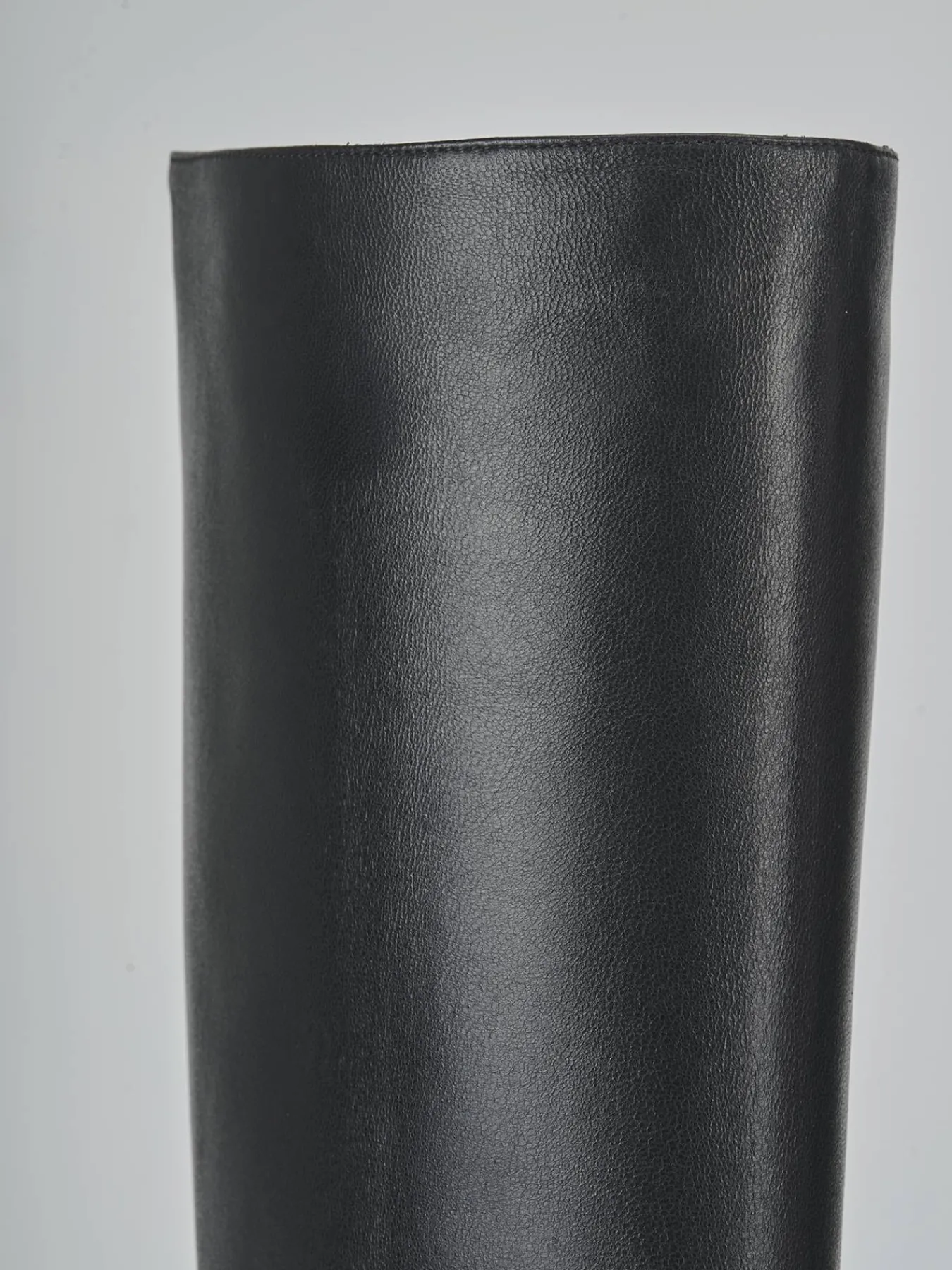Realizzati in morbida pelle nera nappata, questi stivali presentano un’elegante punta sfilata e cuciture a mano che esaltano il gambale tubolare, che si ferma appena sotto il ginocchio.
