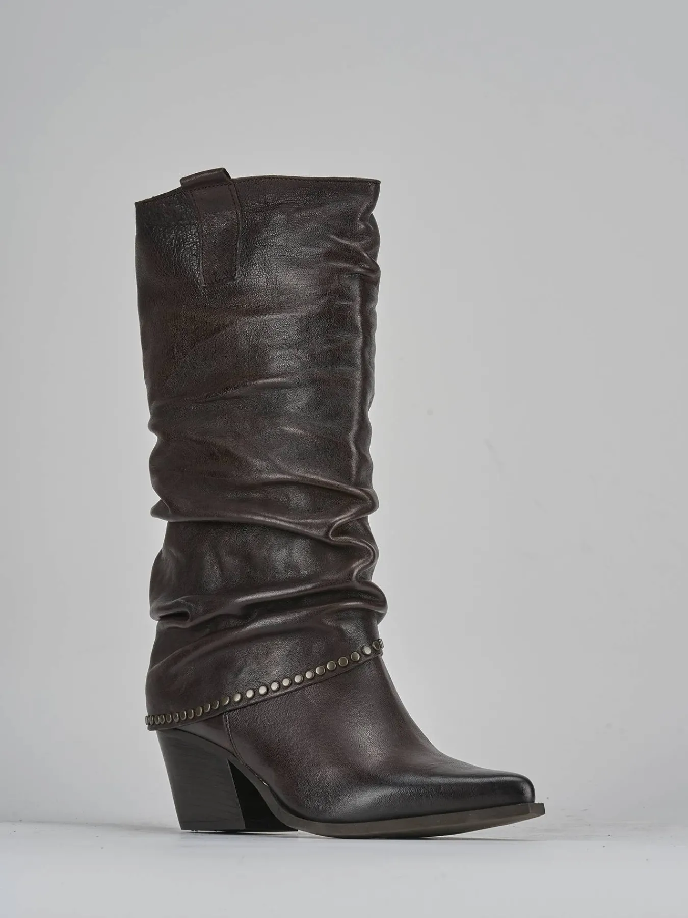 La punta sfilata e il risvolto aggiungono un dettaglio chic, mentre le ghette mantengono la forma del gambale che arriva appena sotto il ginocchio.