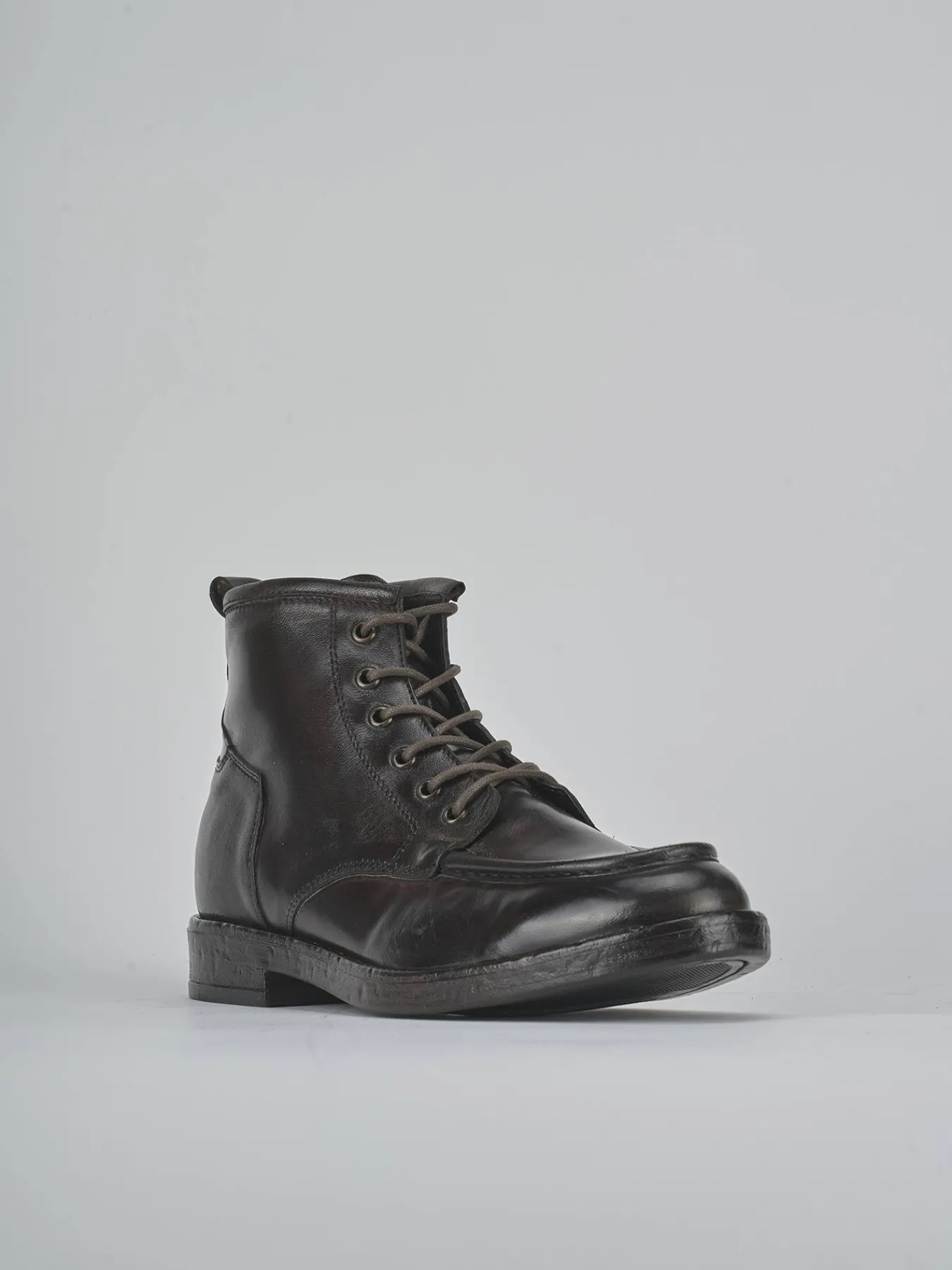 Le cuciture a mano in rilievo aggiungono un tocco artigianale, mentre i lacci con occhielli in metallo garantiscono una chiusura sicura e resistente.