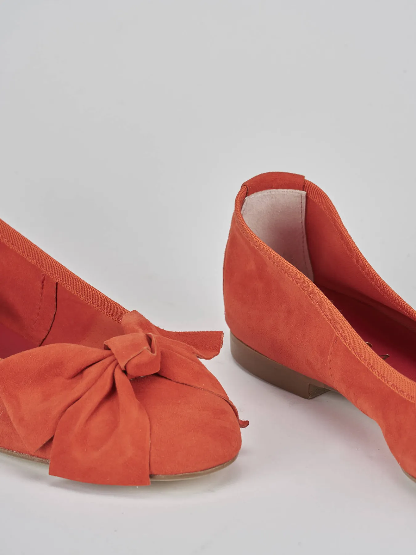 La tomaia in morbido camoscio accarezza il piede, mentre la punta tonda e il fiocco aggiungono un dettaglio femminile delicato.