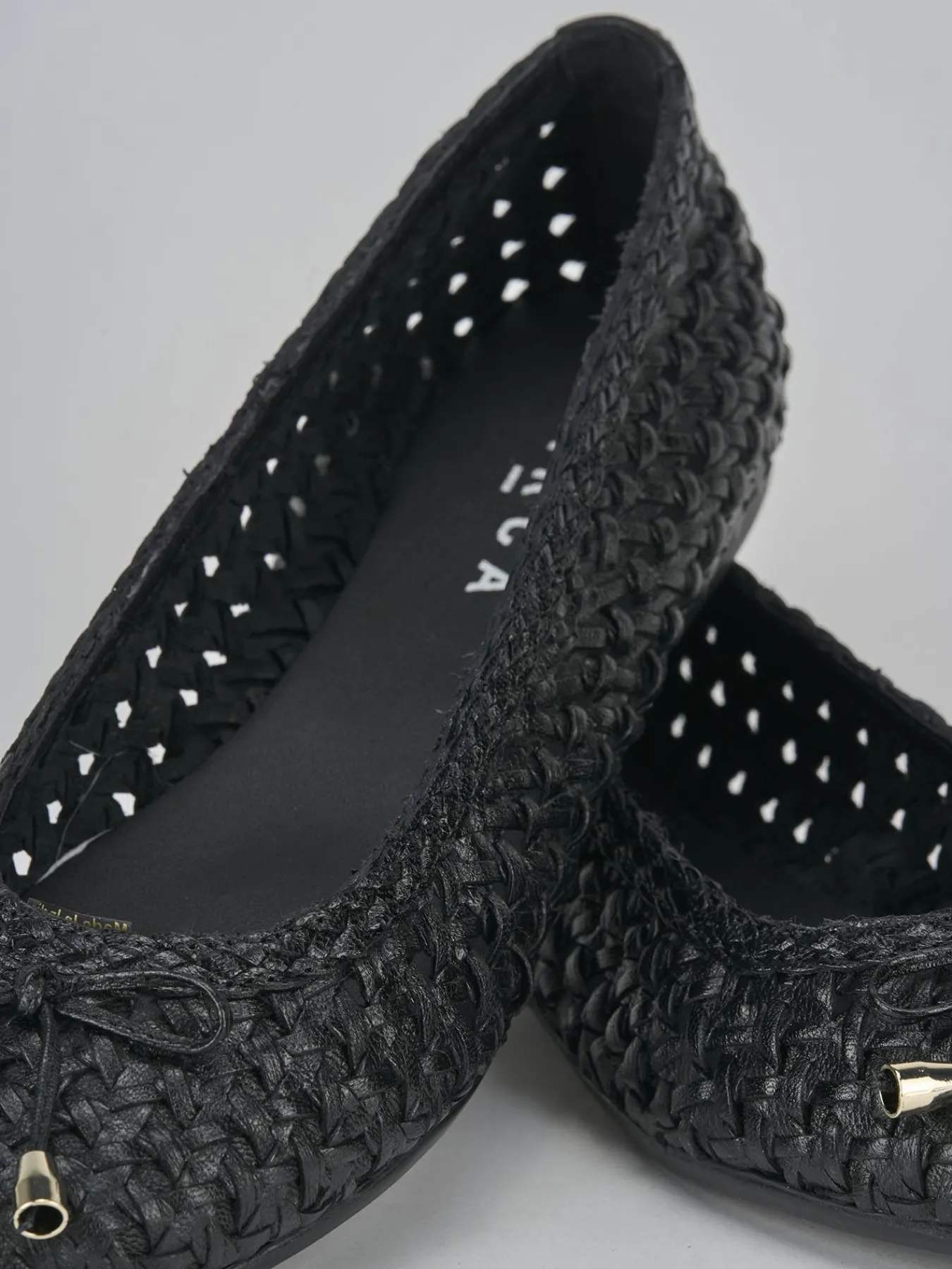 La tomaia è realizzata in morbida pelle finemente intrecciata, che conferisce un aspetto sofisticato e delicato.