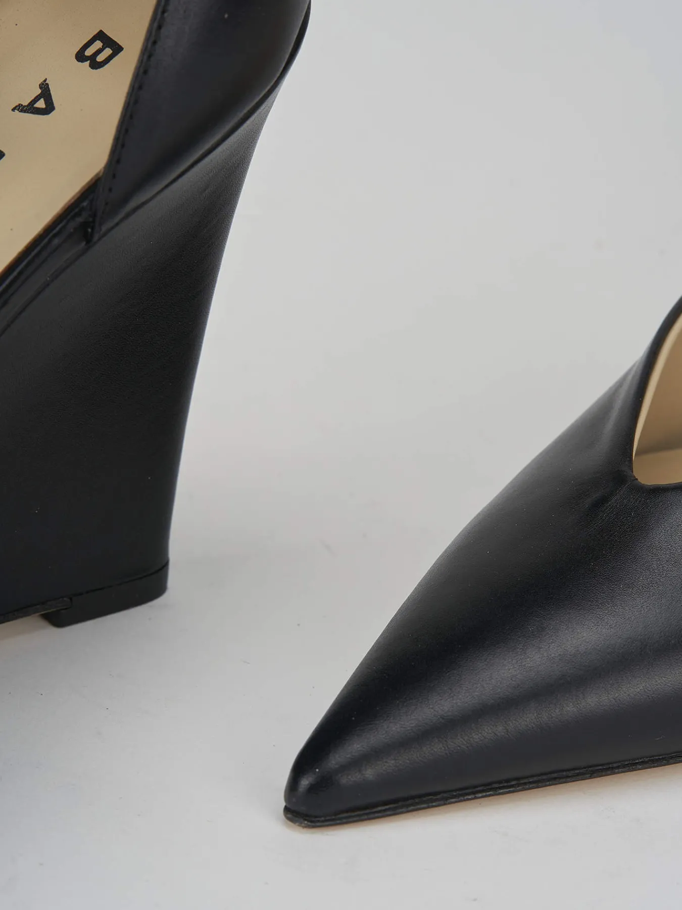 Bebe’ zeppa 11 cm fondo cuoio e soletta interna in vera pelle. tomaia in morbida nappa, punta sfilata, apertura svasata e nuovissima zeppa per un look super-cool.Dalle linee super eleganti uno delle novità di stagione.