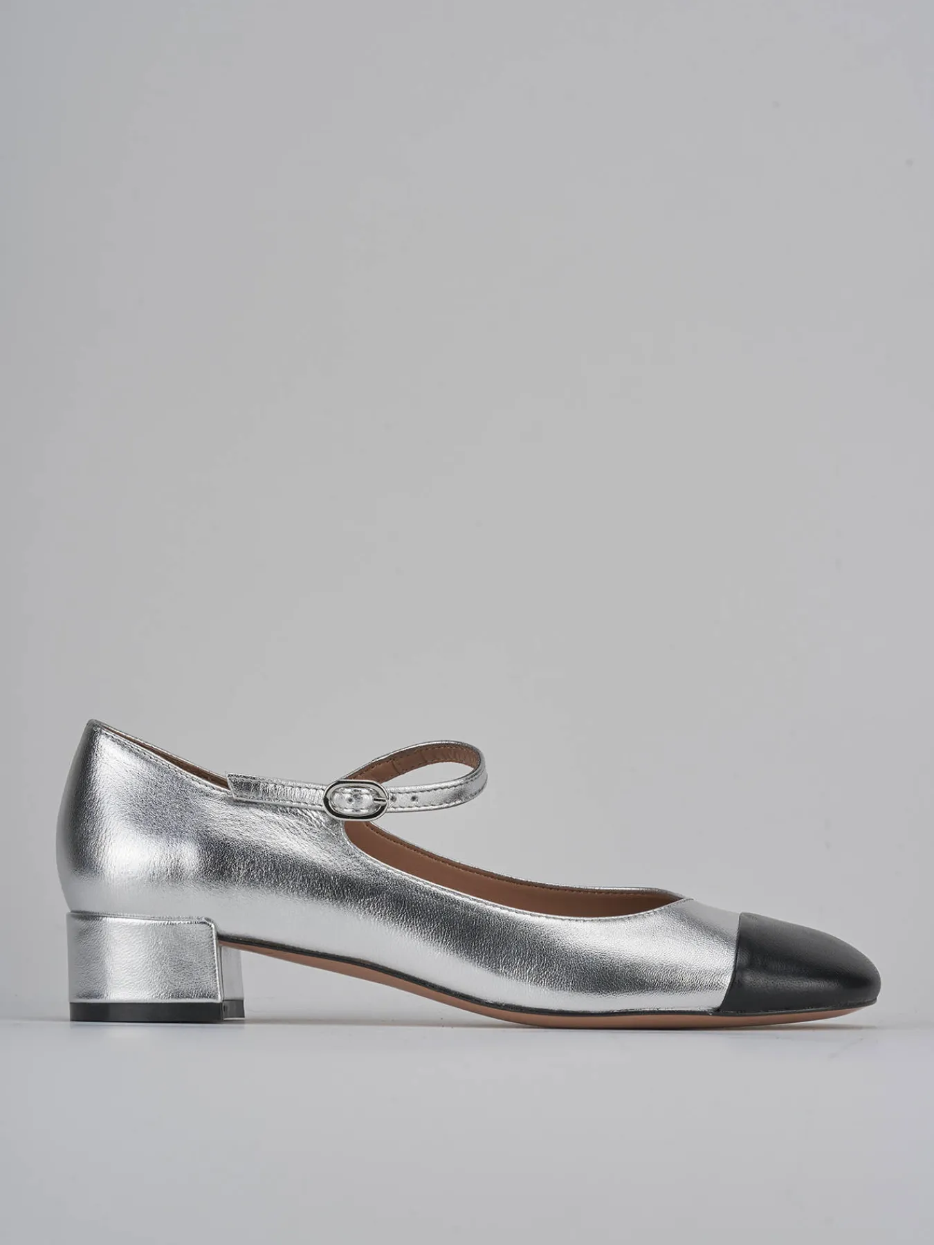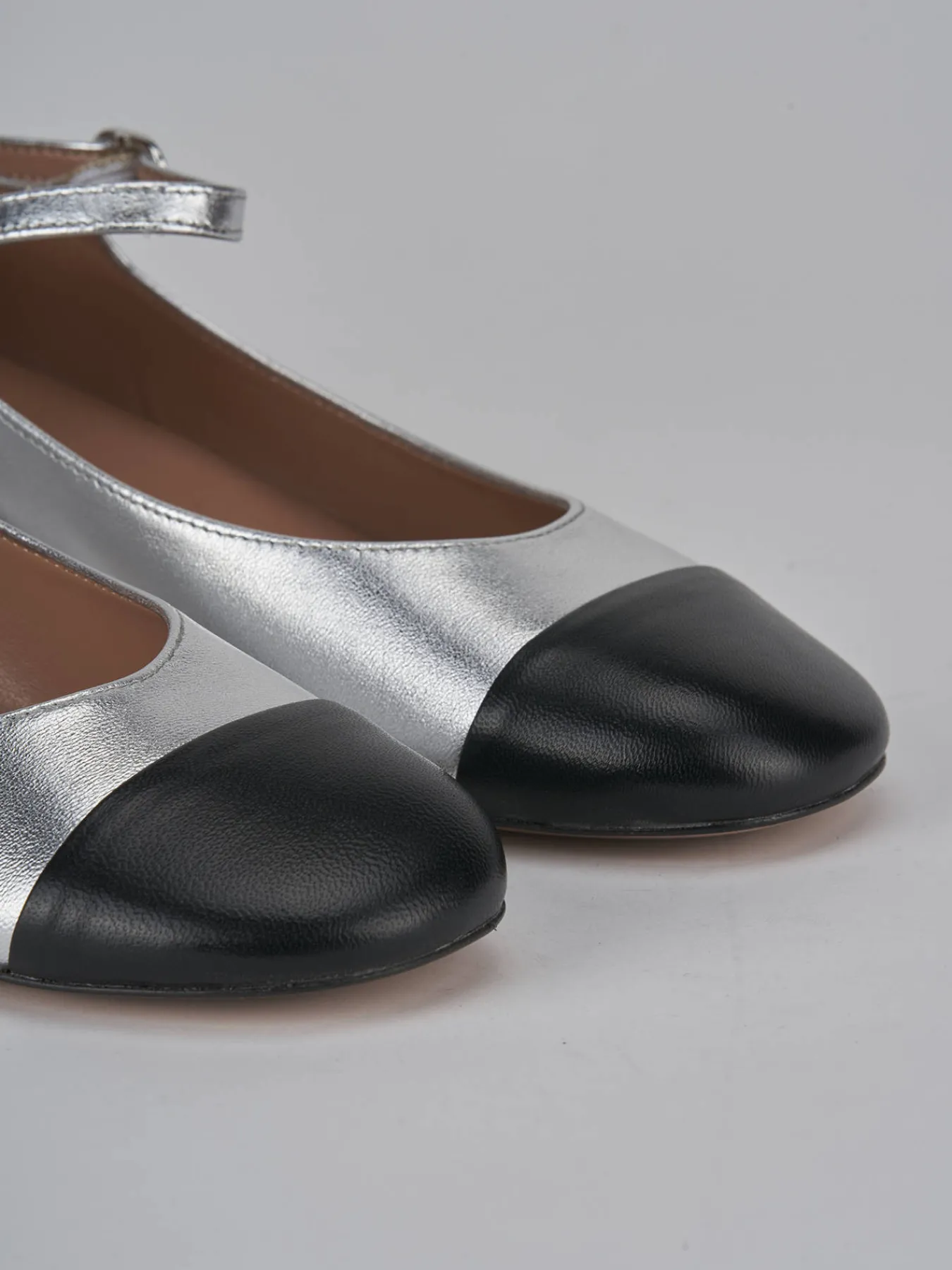 Bebe’ tacco 3 cm fondo in cuoio e soletto interno in vera pelle. tomaia in morbida pelle, punta tonda, cinturino regolabile e puntale bicolor per un tocco glamour ai tuoi look. Un must da avere nell’armadio.