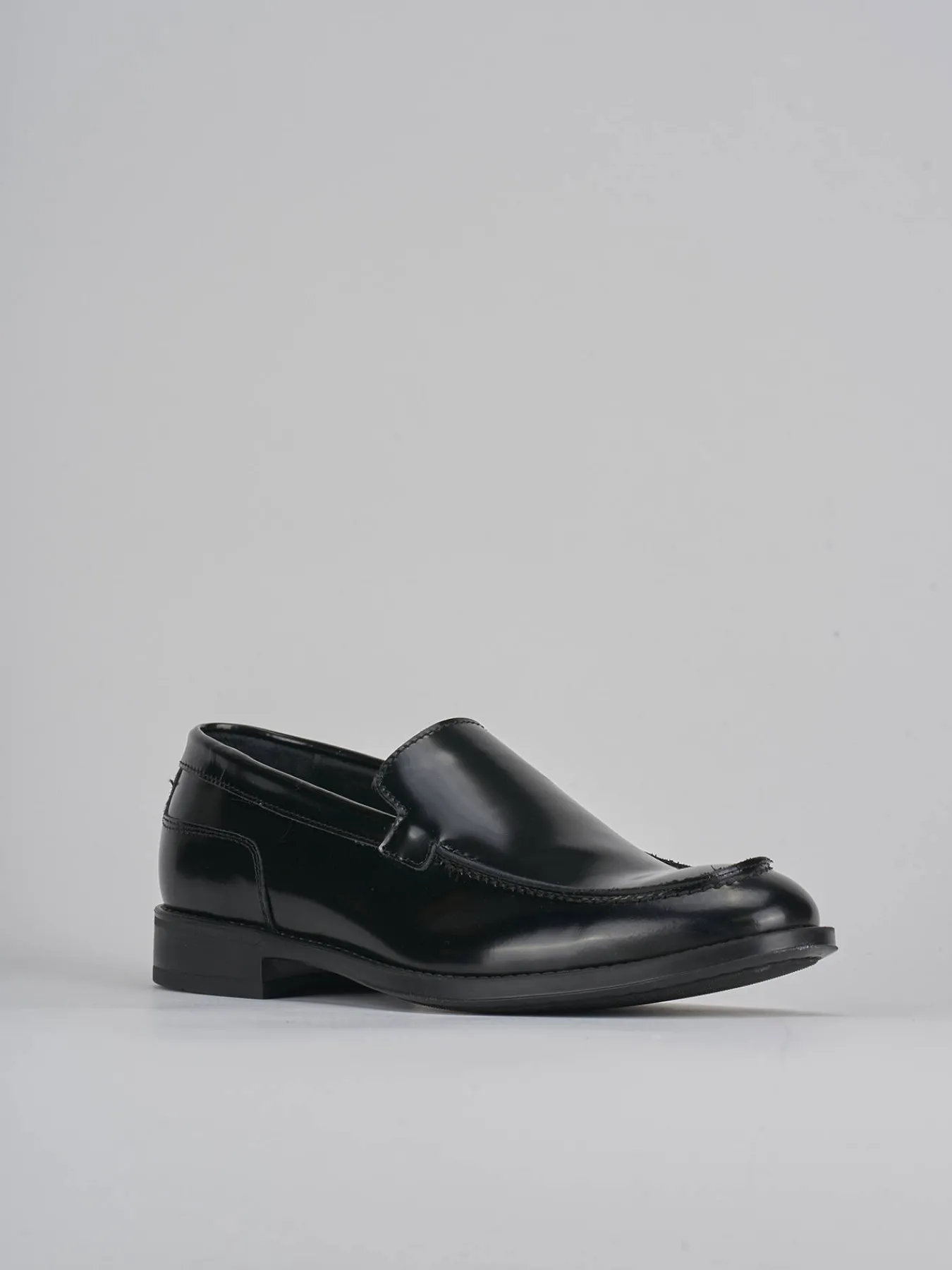 La tomaia in morbida pelle liscia con effetto lucido dona un tocco sofisticato, mentre la punta leggermente squadrata e le cuciture visibili aggiungono un dettaglio distintivo.