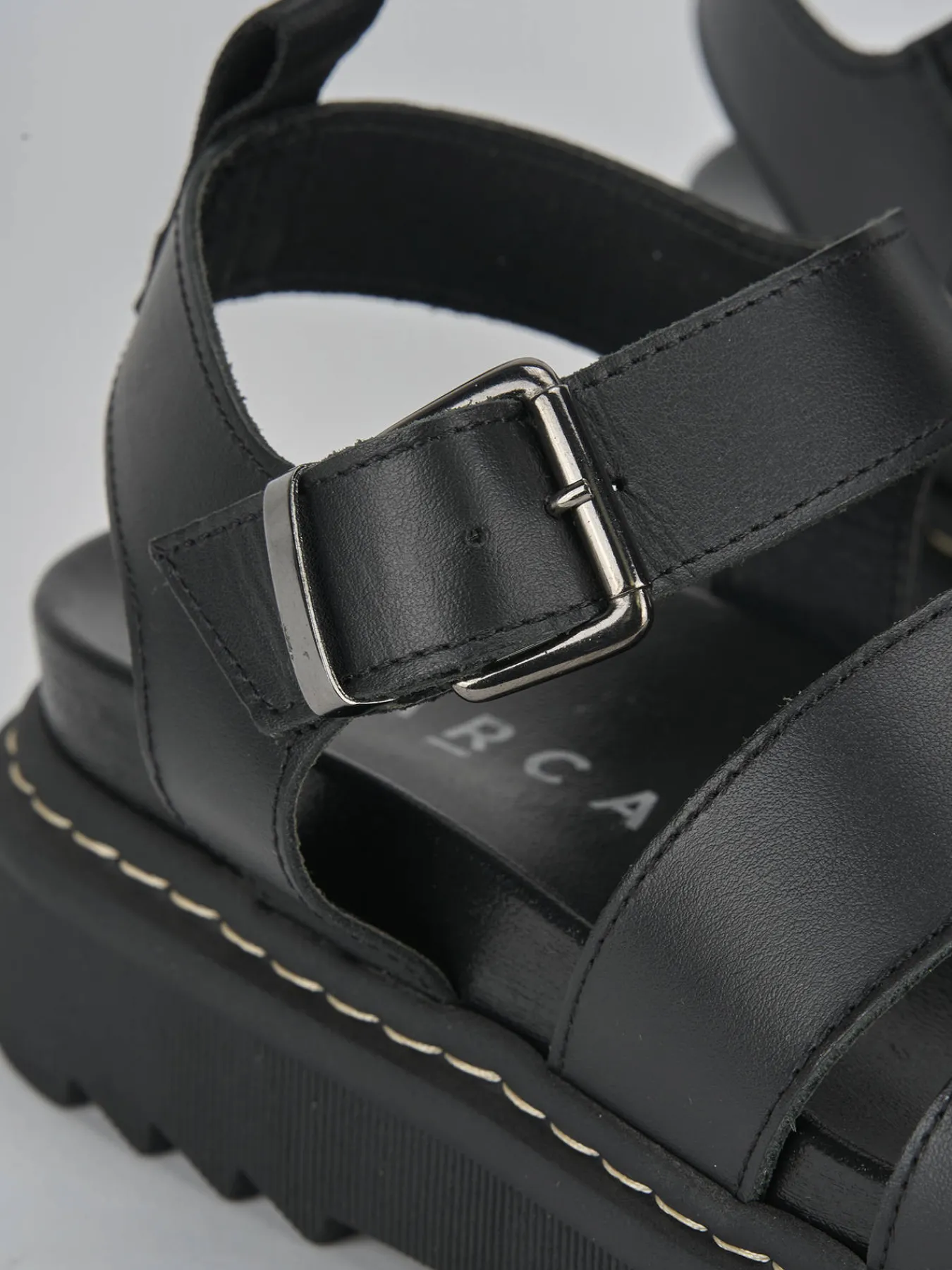 Sandalo fondo over 2 cm in leggerissima gomma e soletto interno in vera pelle. Tomaia in morbida pelle, punta tonda, fasce e cinturino con fibbia regolabile per un look street-cool.