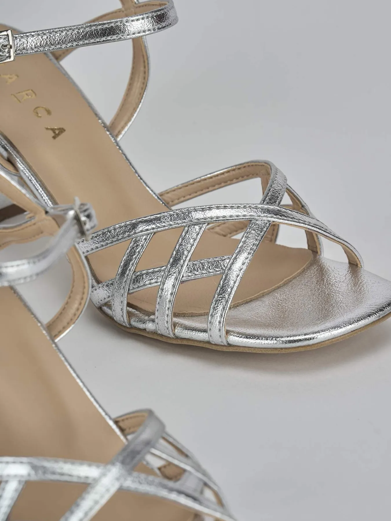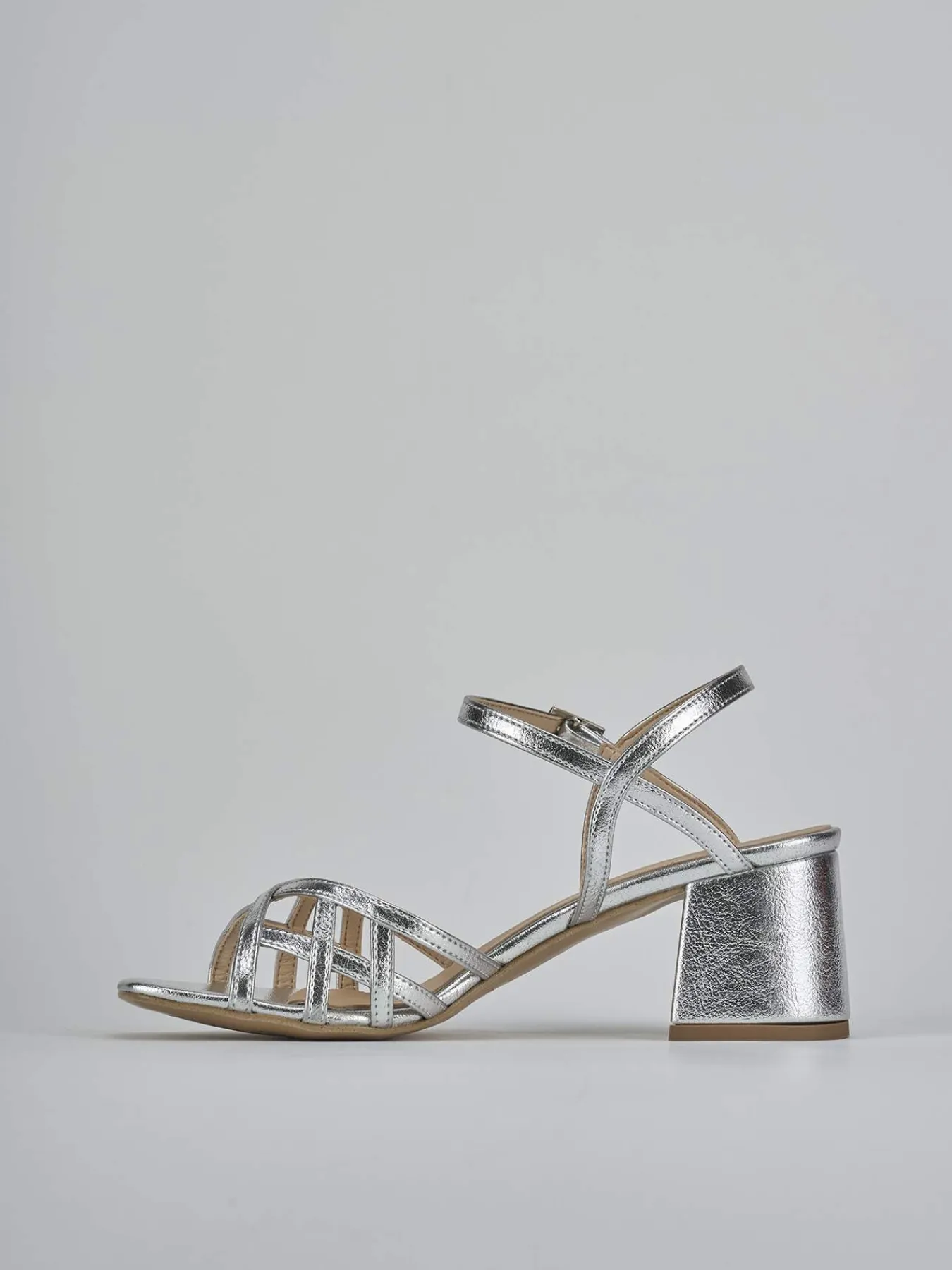Sandalo tacco 5 cm fondo in leggerissima gomma e soletto interno in vera pelle. Tomaia in morbida pelle, punta squadrata, fascette incrociate, cinturino con fibbia regolabile e tacco grosso. perfetto con un vestito leggero e morbido.