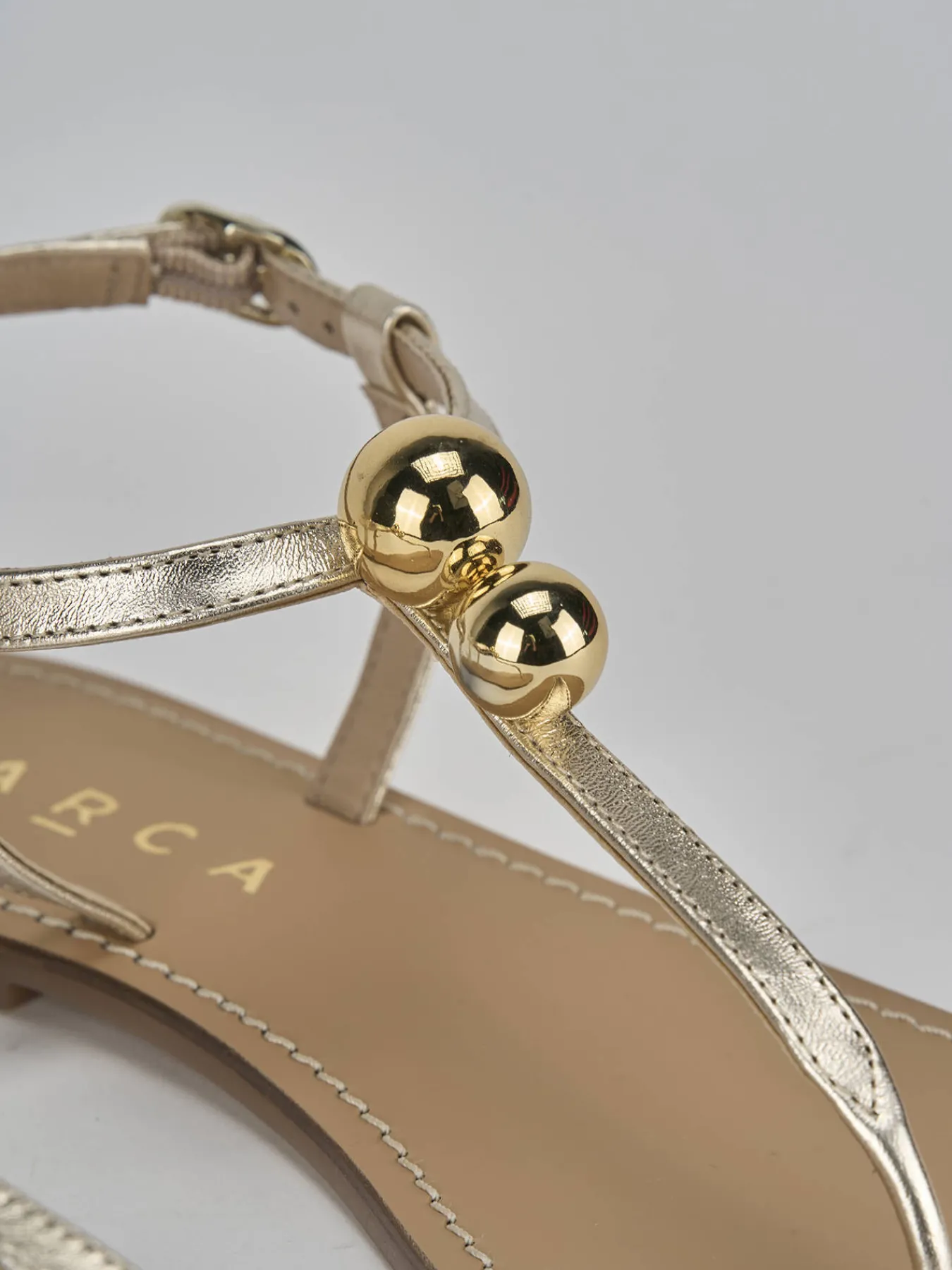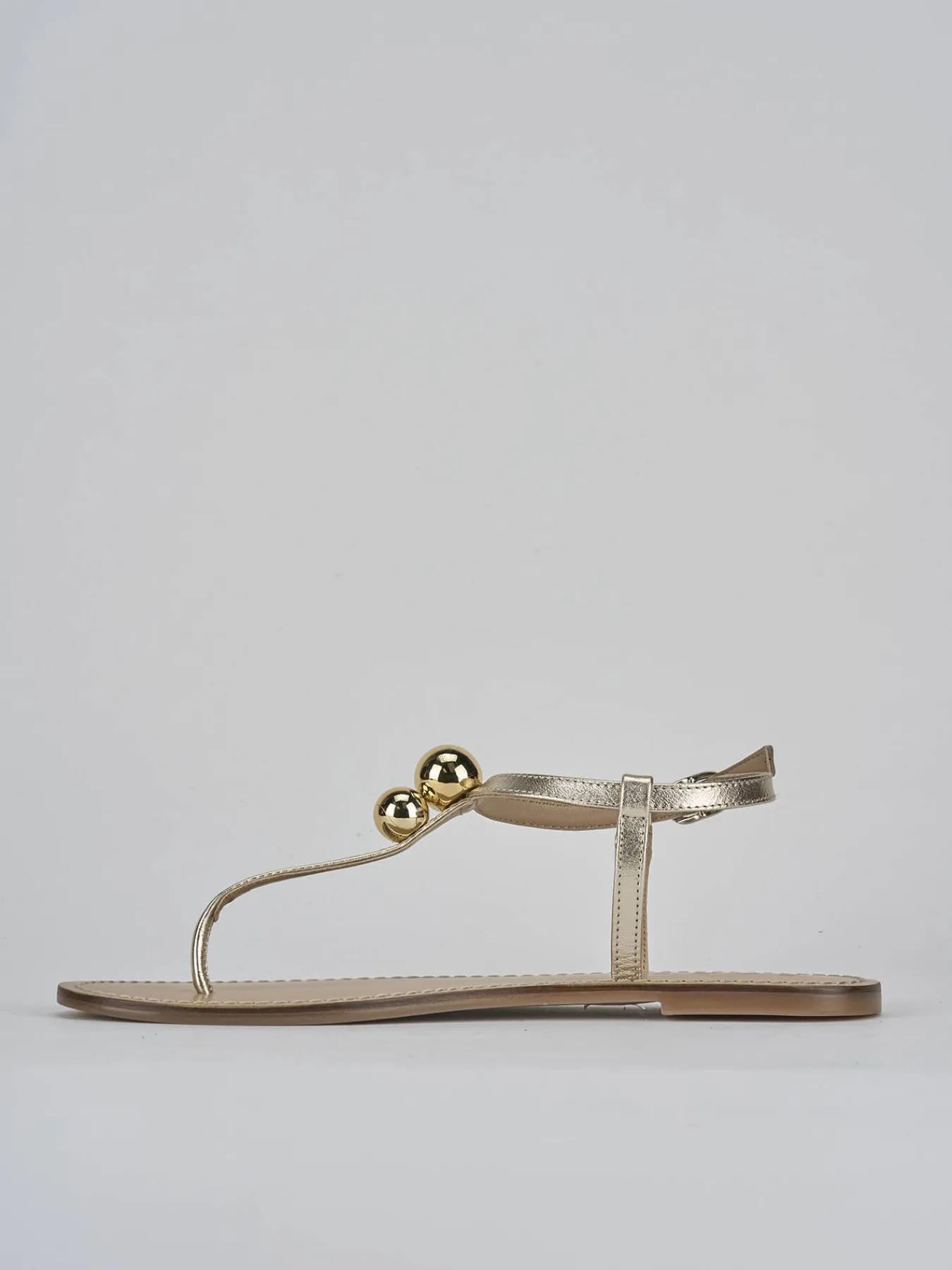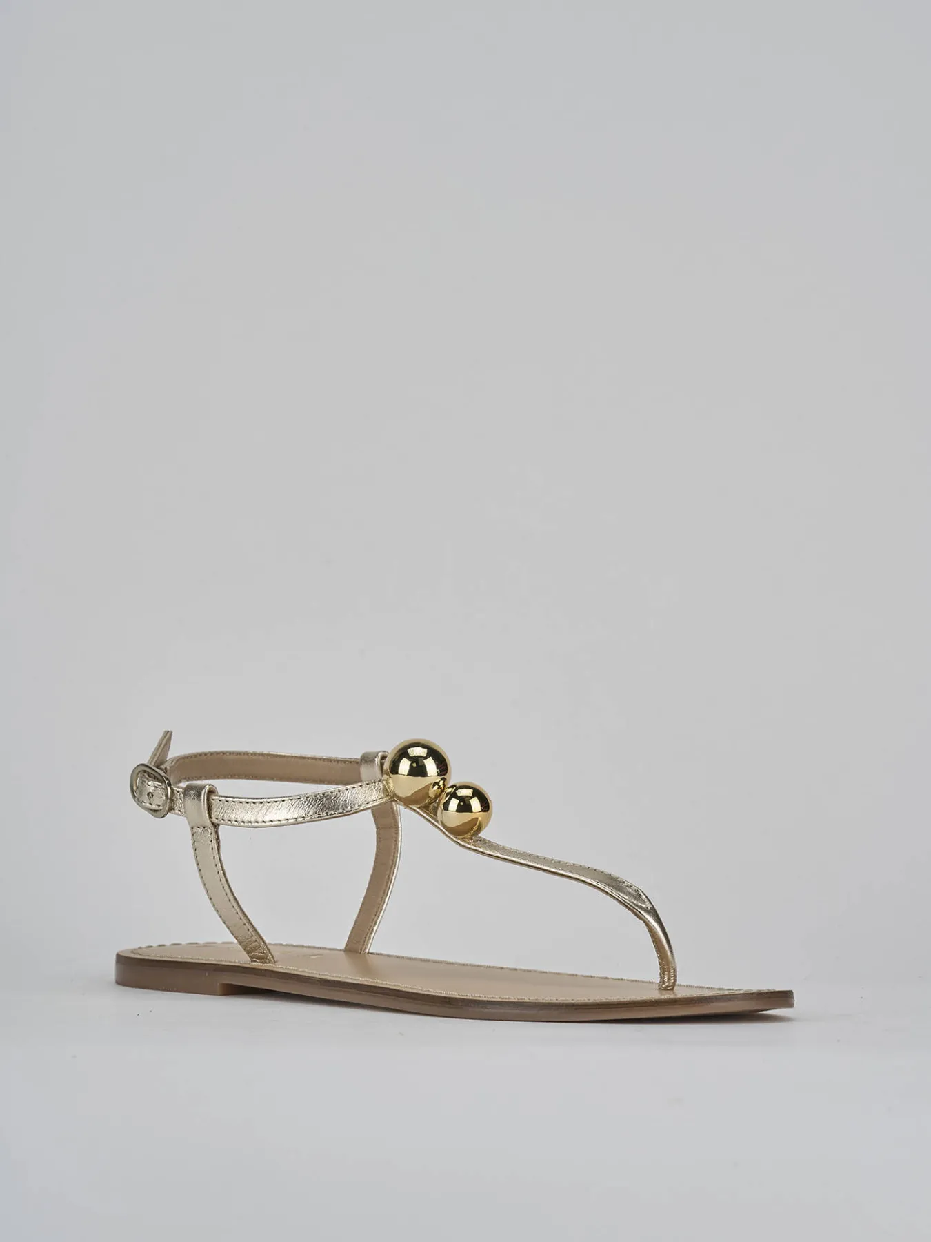 Realizzato in pelle nappata morbidissima, questo sandalo si distingue per la sua raffinata tonalità oro.