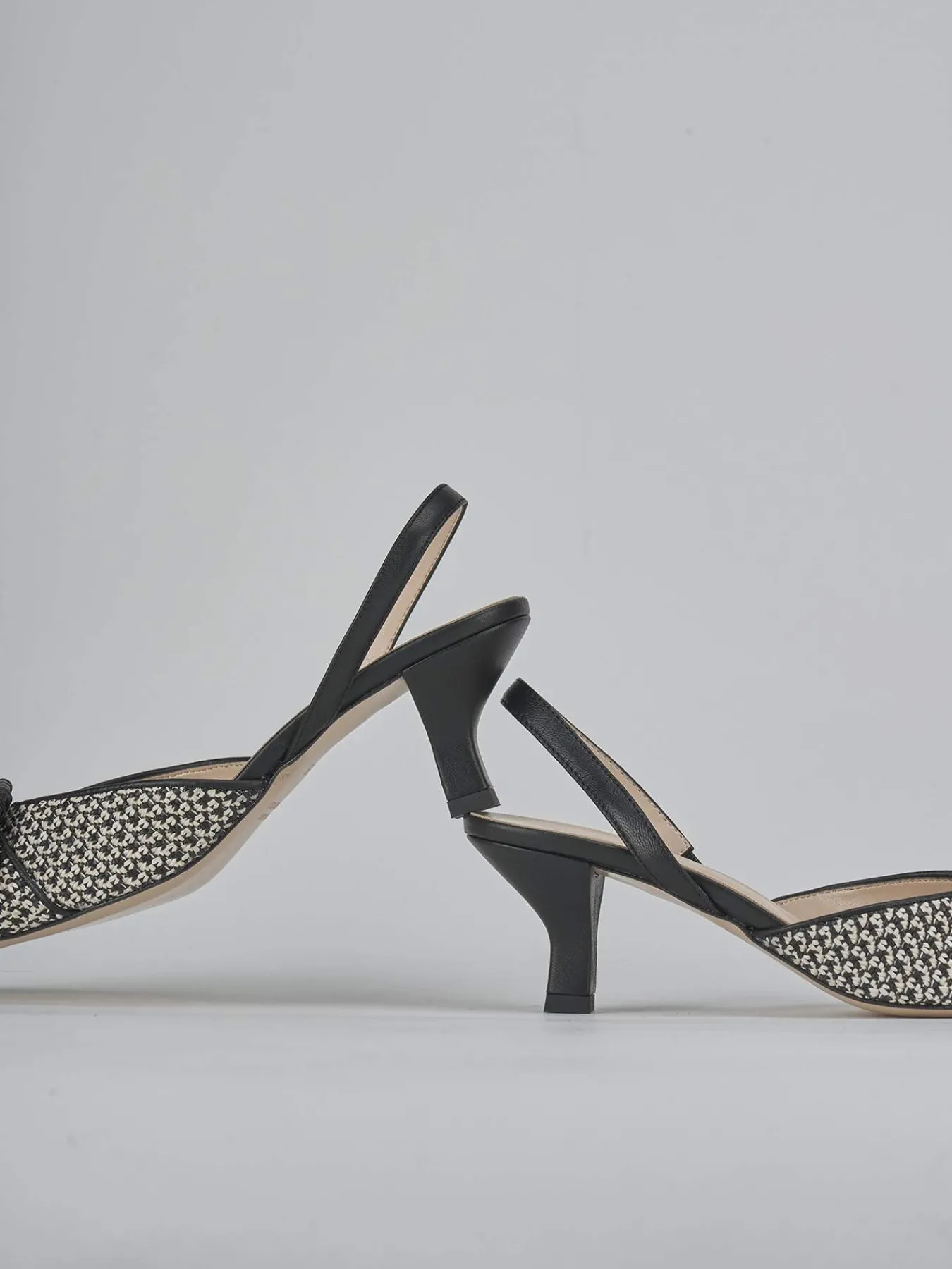 Slingback decolte’ tacco 6 cm fondo in cuoio e soletto interno in vera pelle. Tomaia in morbida pelle foderata in tessuto, punta sfilata, scollo profondo a ‘U’, accessorio fibbia sulla punta, cinturino elasticizzato e nuovissimo tacco rocchetto. Perfetto con una minigonna e una t-shirt.