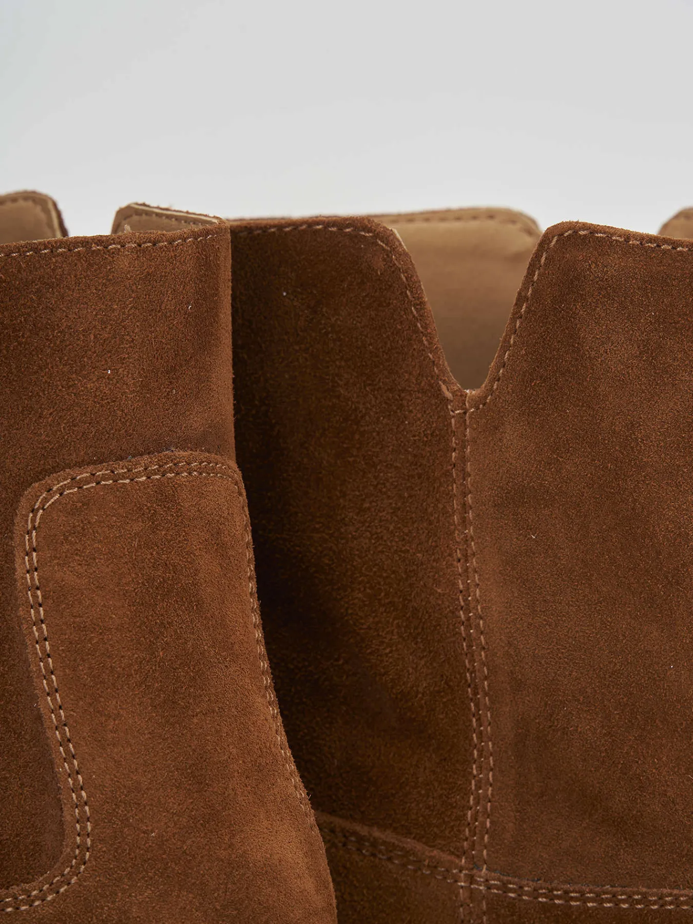 Stivaletto con zeppa interna 3cm e tacco 1.5 cm fondo in gomma e soletto interno in vera pelle. tomaia in morbida pelle scamosciata, punta tonda, cuciture fatte a mano e spacco laterale a ‘u’. scarpa passepartout e versatile per ogni tuo outfit.