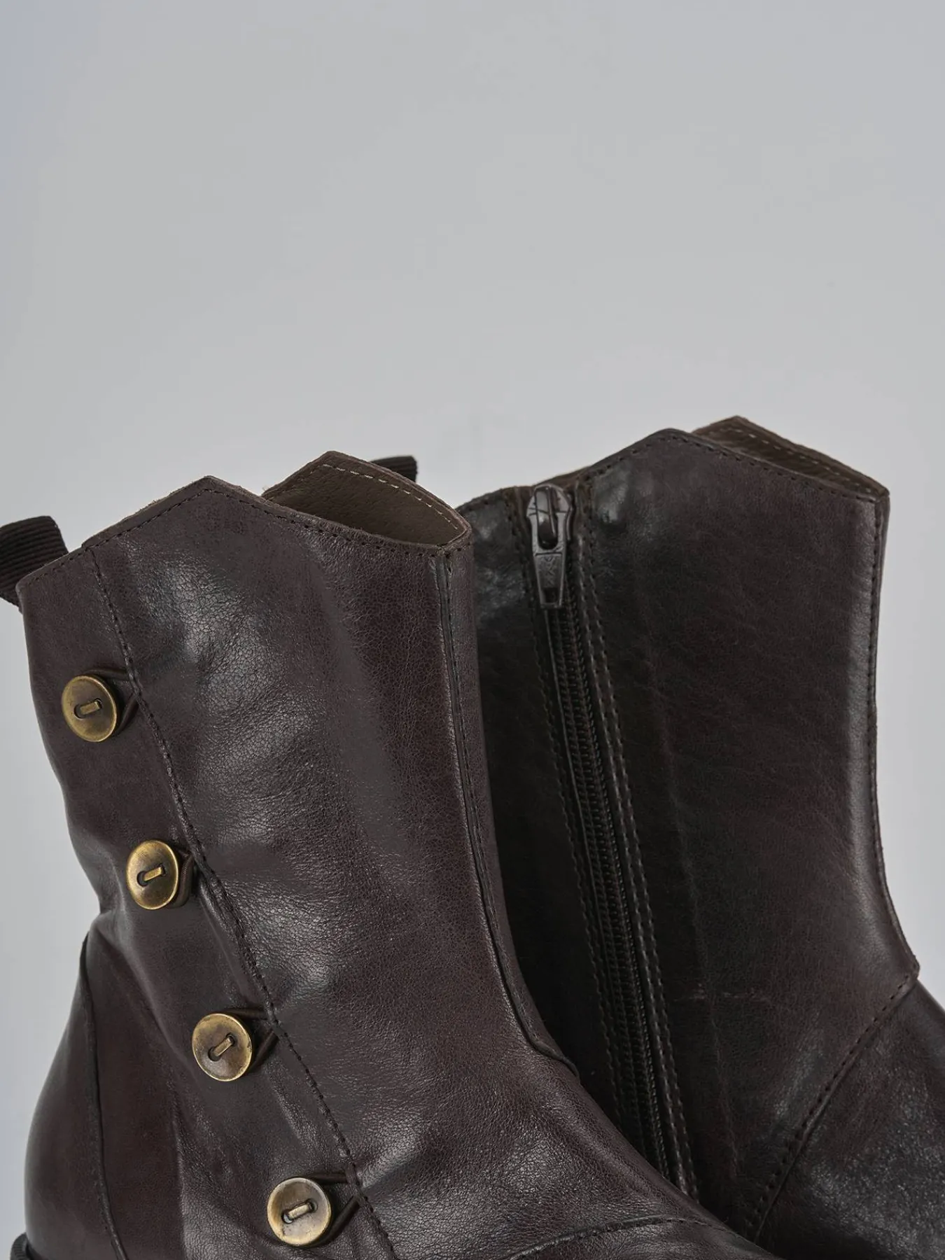 Le cuciture a mano a vista e i bottoni laterali donano un dettaglio artigianale unico.