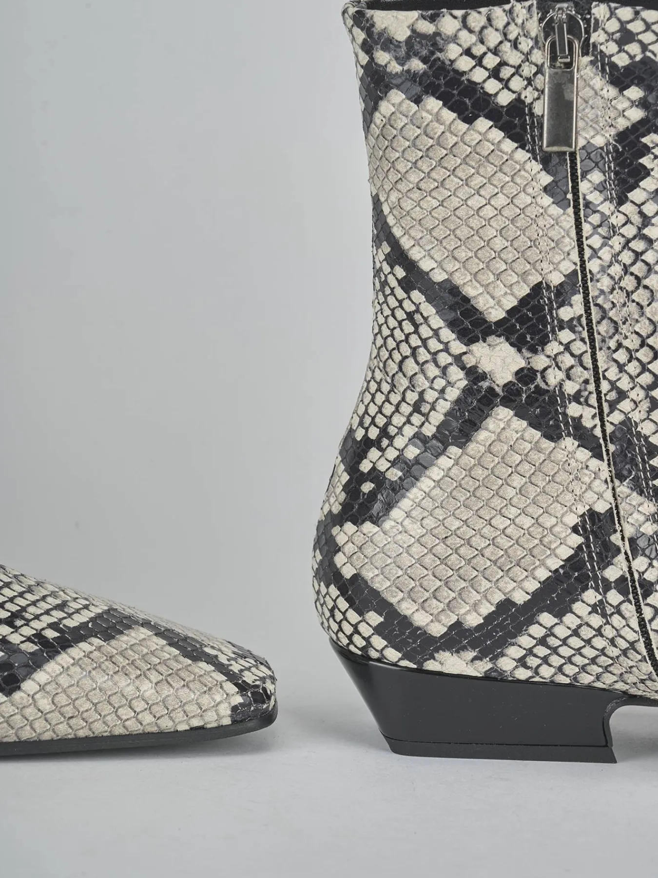 La tomaia in morbida pelle stampata effetto pitonato dona un tocco di eleganza e originalità.