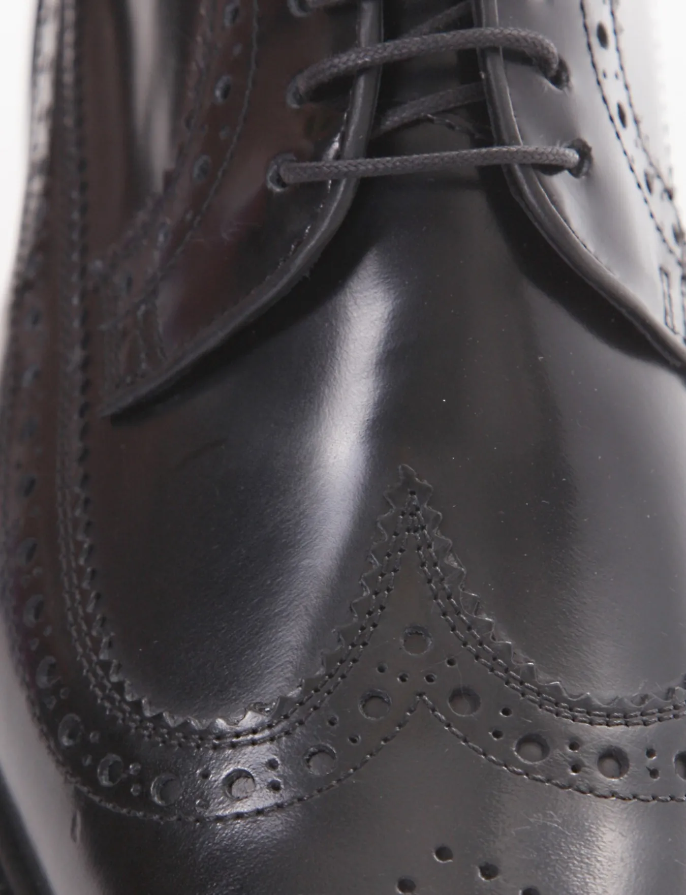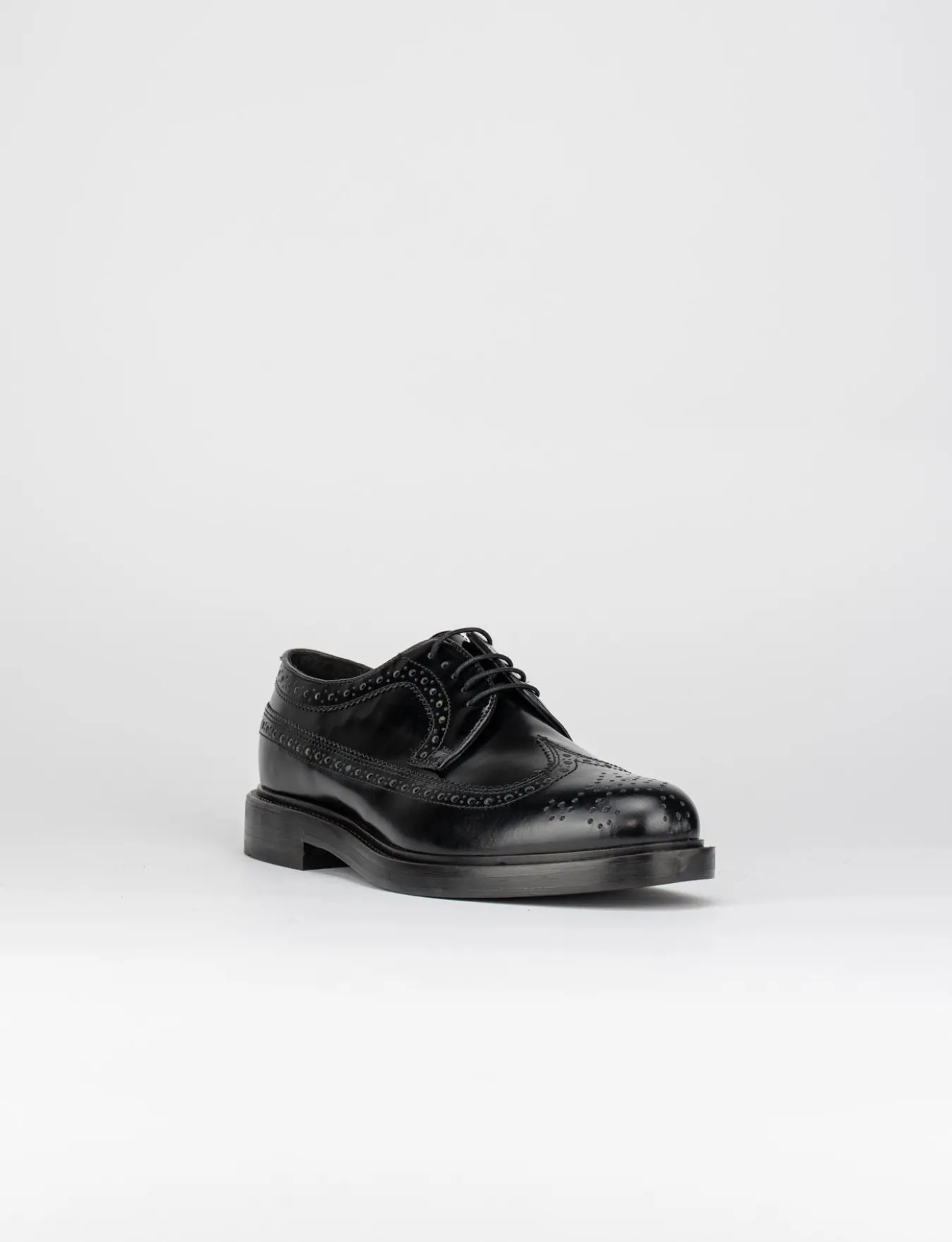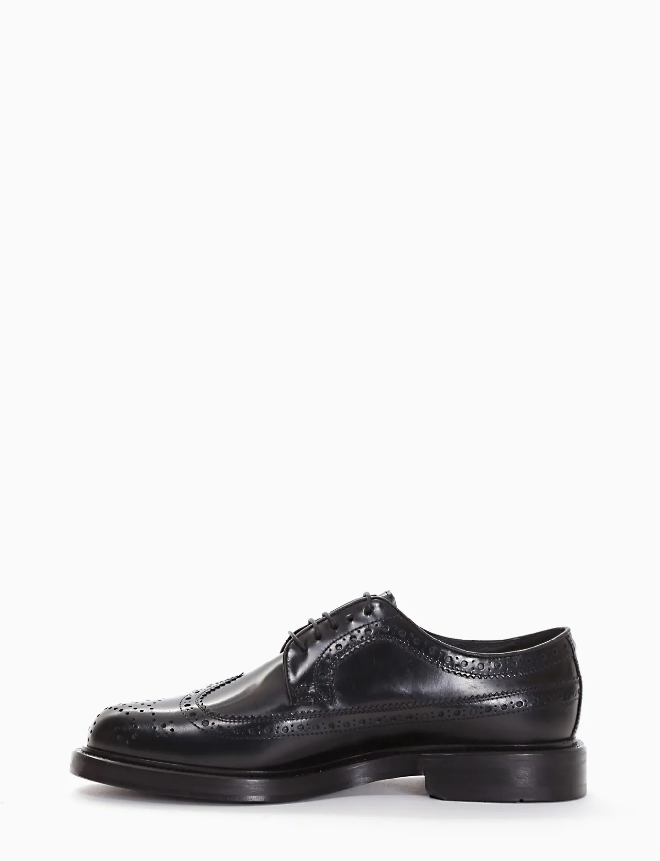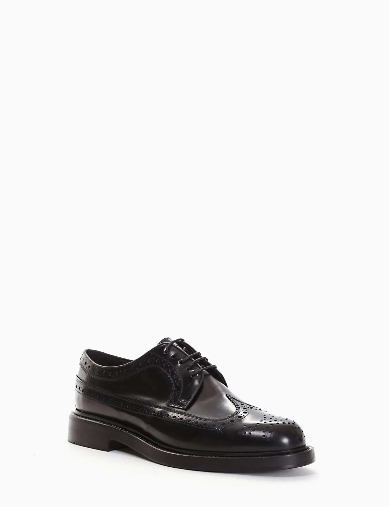 Stringata con fondo cuoio e soletto in vera pelle, tacco 20, morbida tomaia in pelle con lavorazione inglese e coda di rondine.