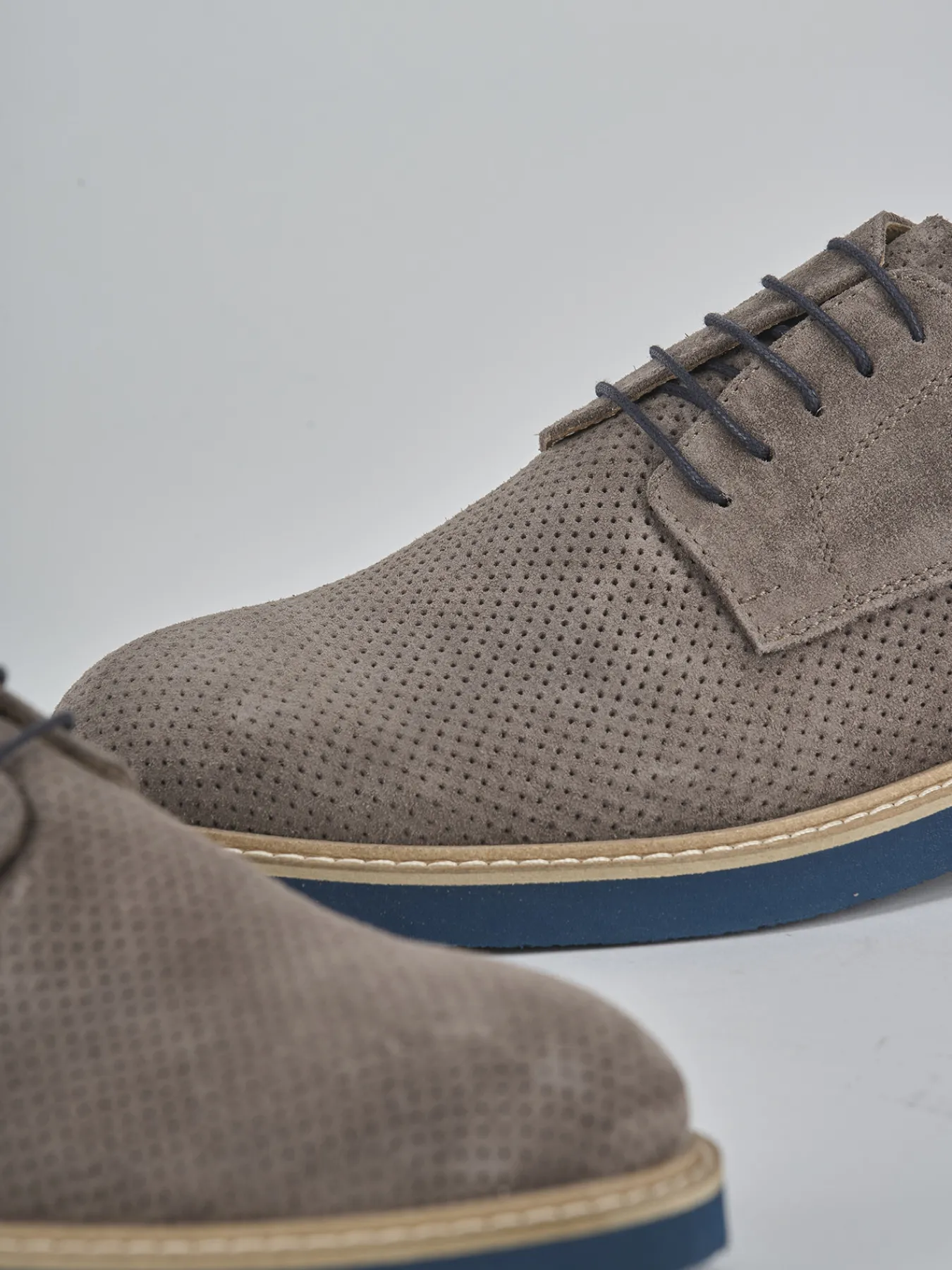 Il design derby con lacci e la punta affusolata conferiscono un tocco di raffinatezza, mentre il microforato in punta aggiunge un dettaglio distintivo.