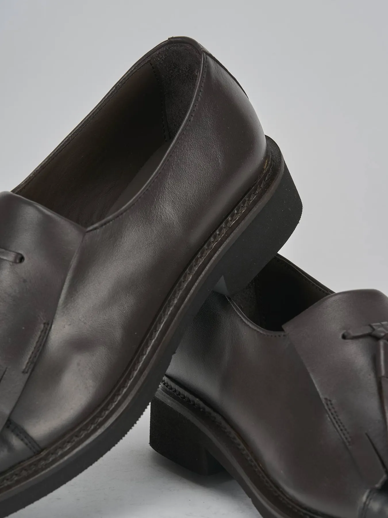 La punta affusolata e il puntale aggiungono un tocco di eleganza, mentre le nappine e le frange donano un dettaglio chic.
