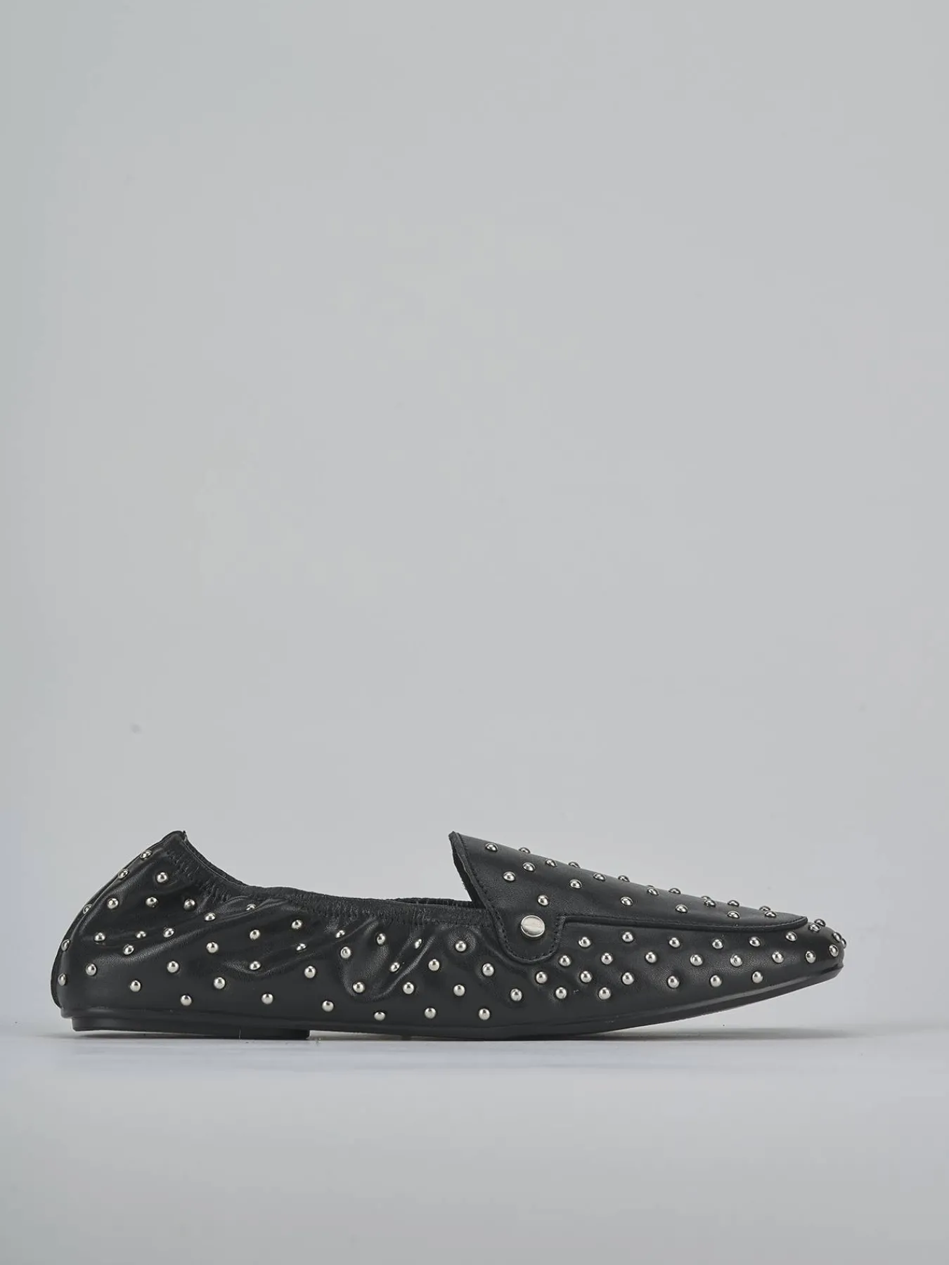 La tomaia è realizzata in morbida pelle nera, con una punta leggermente squadrata che dona un tocco di modernità.