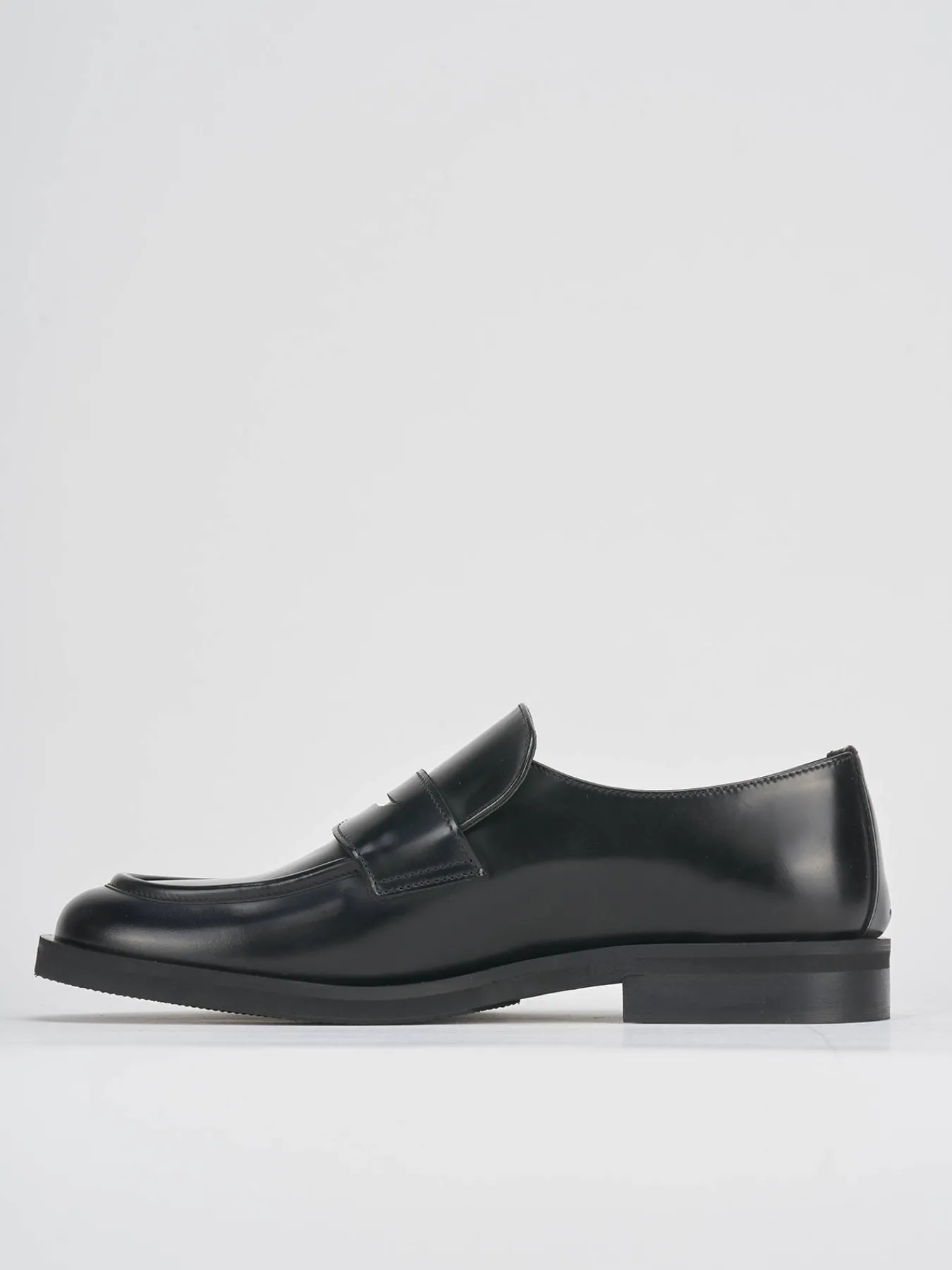 Realizzati in morbida pelle nera abrasivata, questi mocassini offrono un look raffinato e versatile, adatto a ogni occasione.
