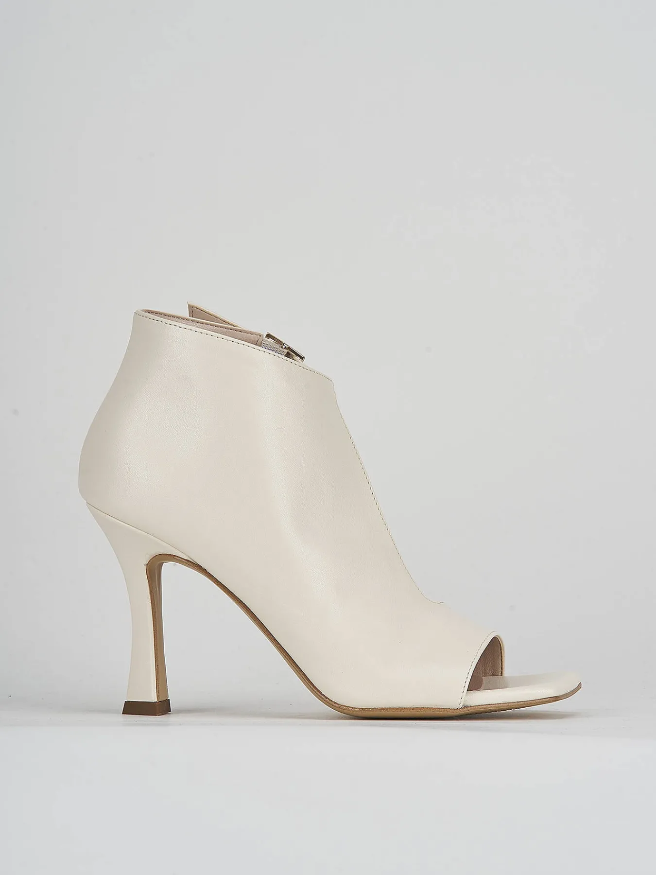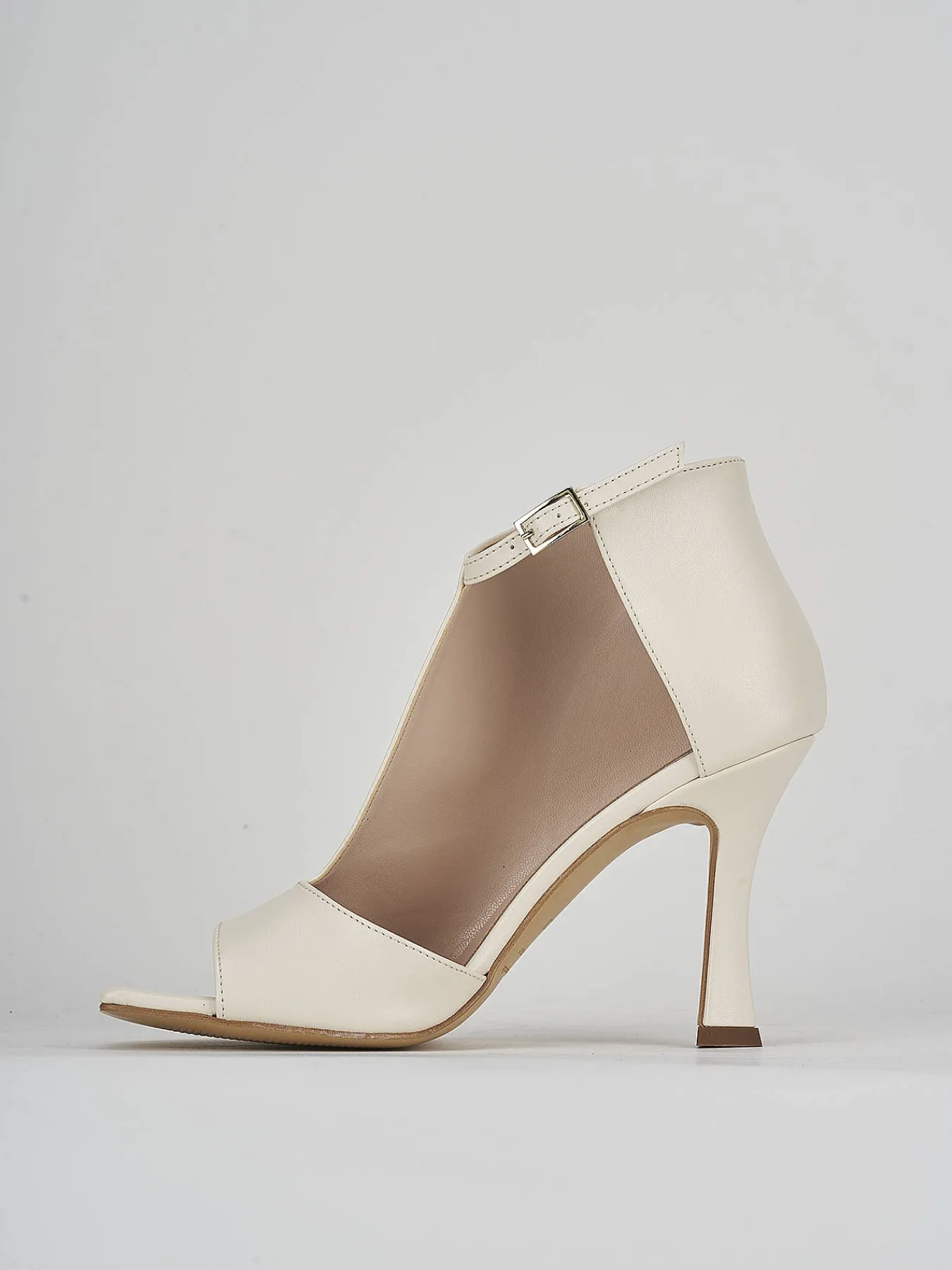 Sandalo tacco 8 cm , fondo in leggerissima gomma e soletto interno in vera pelle. Tomaia in morbidissima pelle, punta aperta squadrata, adatti con un vestito per un look chic ed elegante.