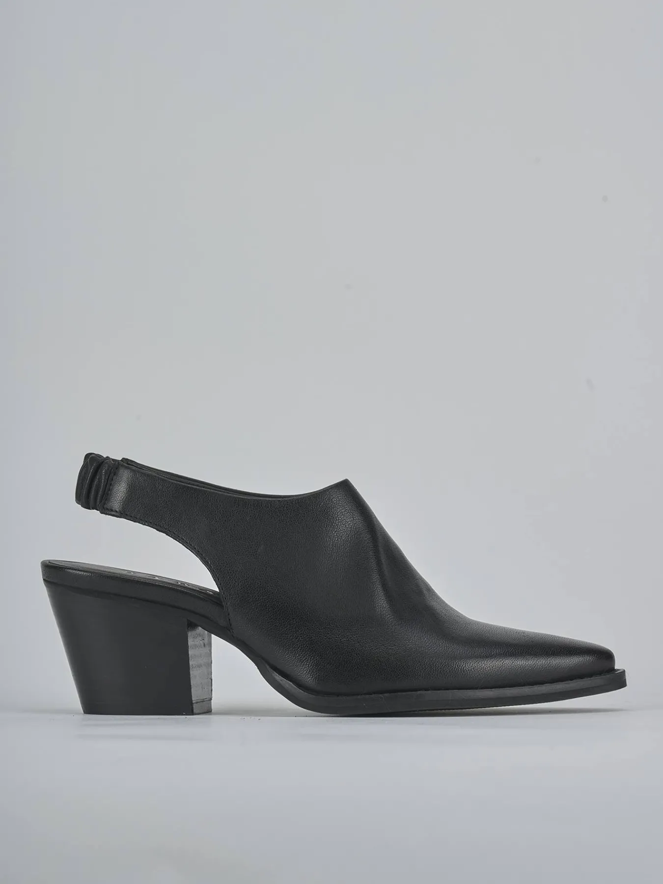 Slingback decolte’ tacco 6 cm fondo in leggera gomma e soletto interno in vera pelle. Tomaia in morbida pelle, punta sfilata, cinturino elasticizzato per una calzata su misura e tacco grosso. Guardolo leggermente sporgente per un look che ti farà notare.