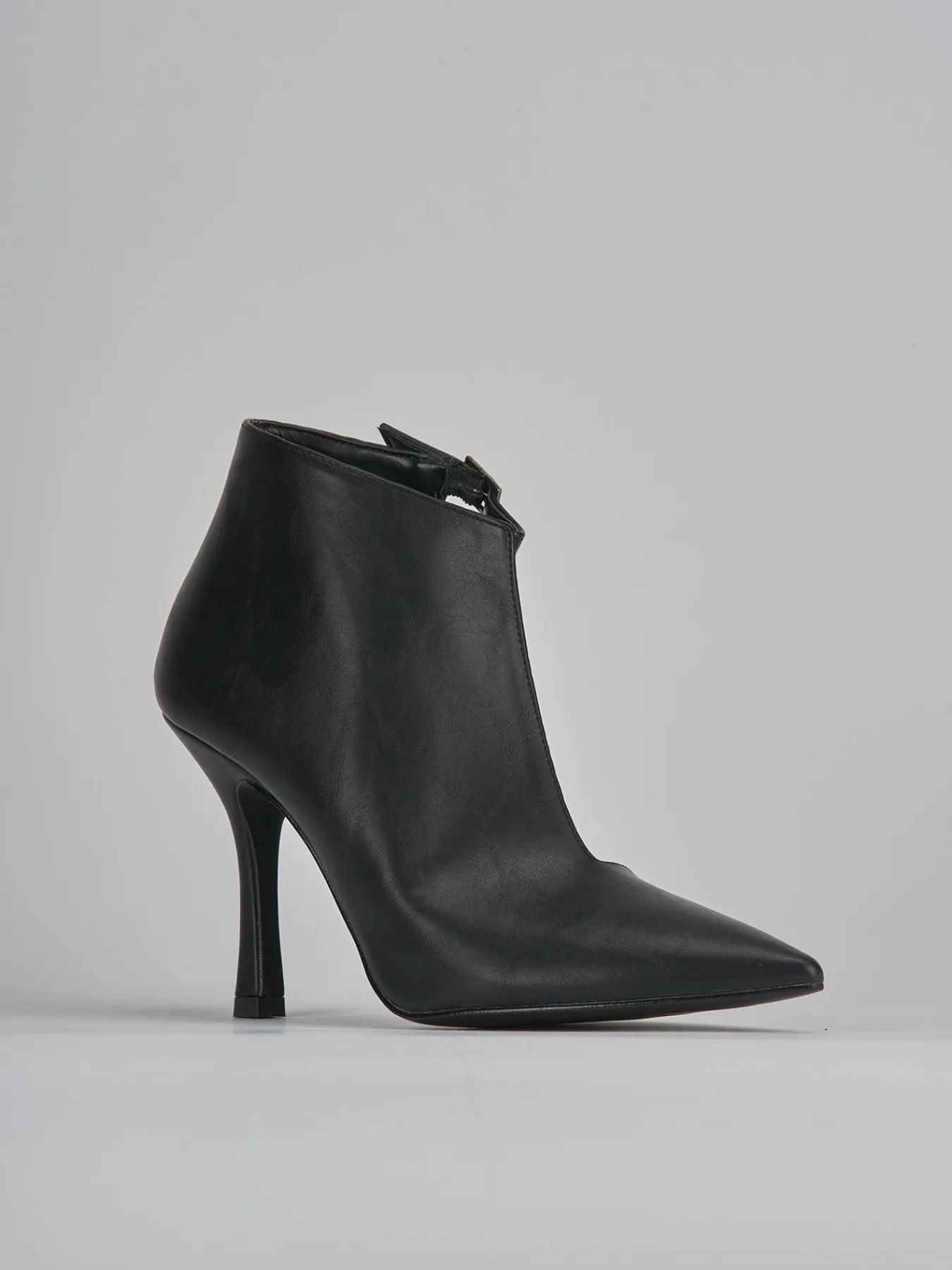 stivaletto tacco 9 cm fondo in leggera gomma e soletto interno in vera pelle. tomaia in morbida pelle, punta sfilata, aperto lateralmente fino alla punta, cinturino regolabile e tacco rocchetto. perfetto sia con una gonna o un paio di jeans.