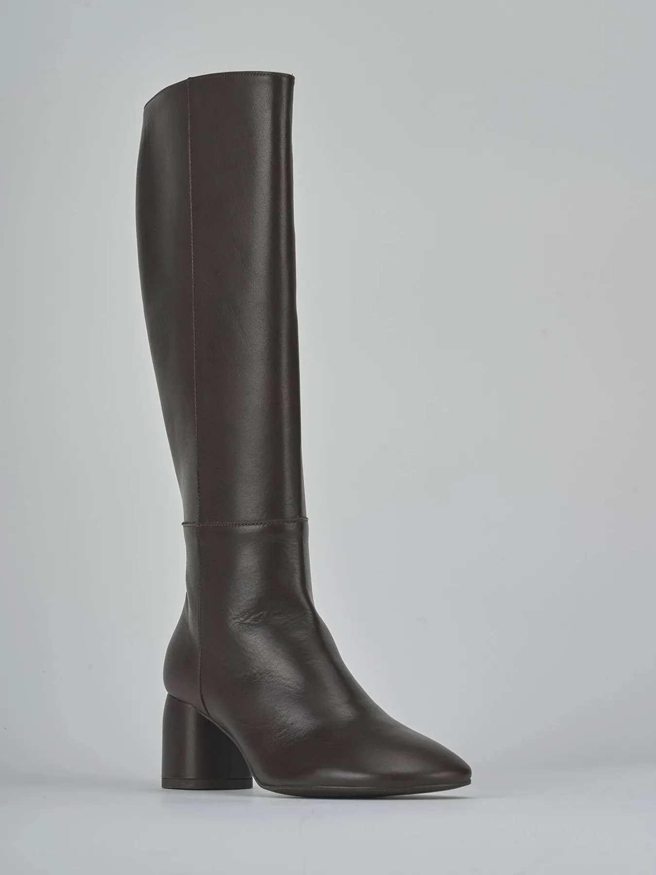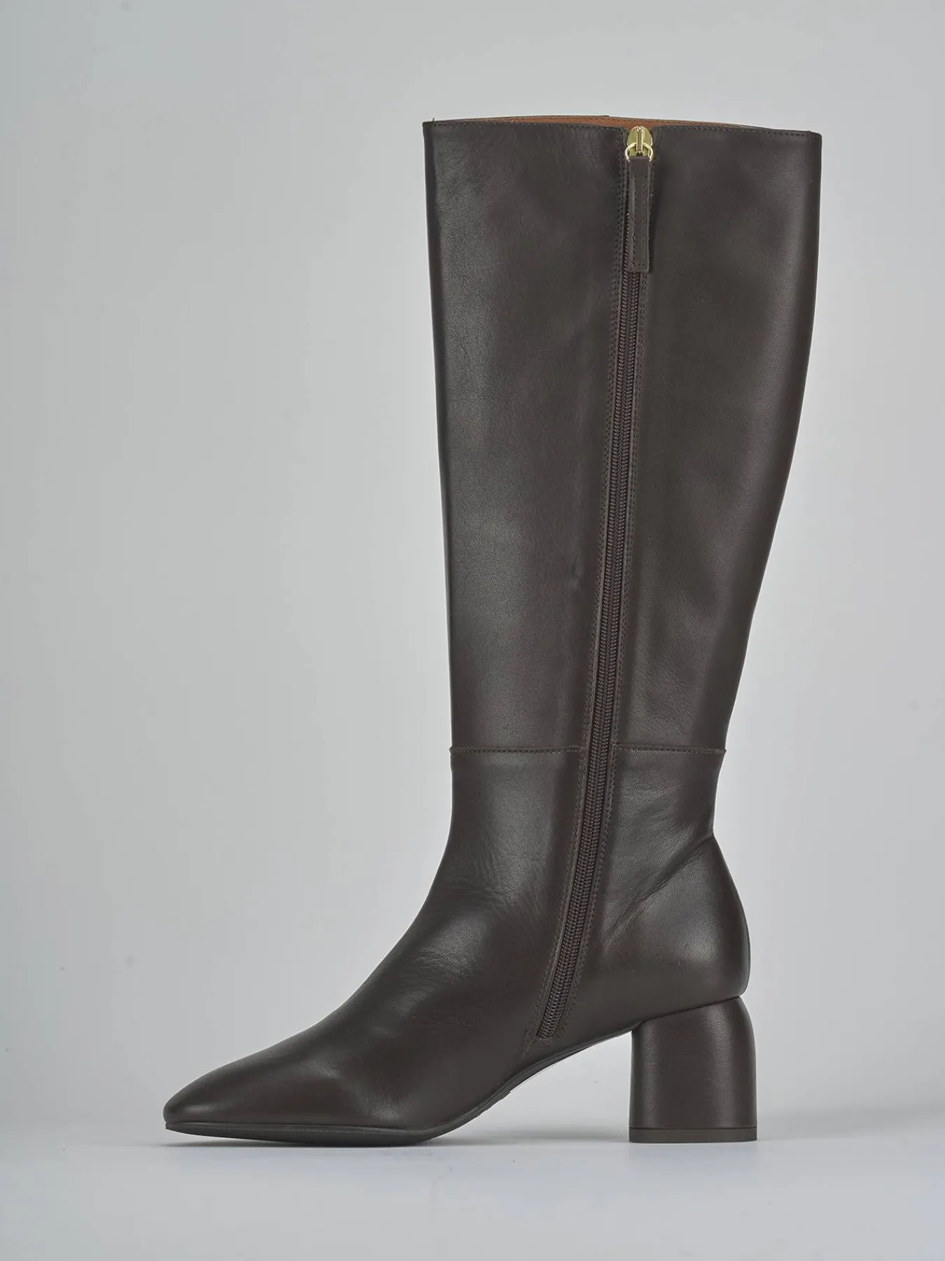 Realizzati in pelle testa di moro, questi stivali presentano un tacco di 6 cm che slancia la figura con grazia.