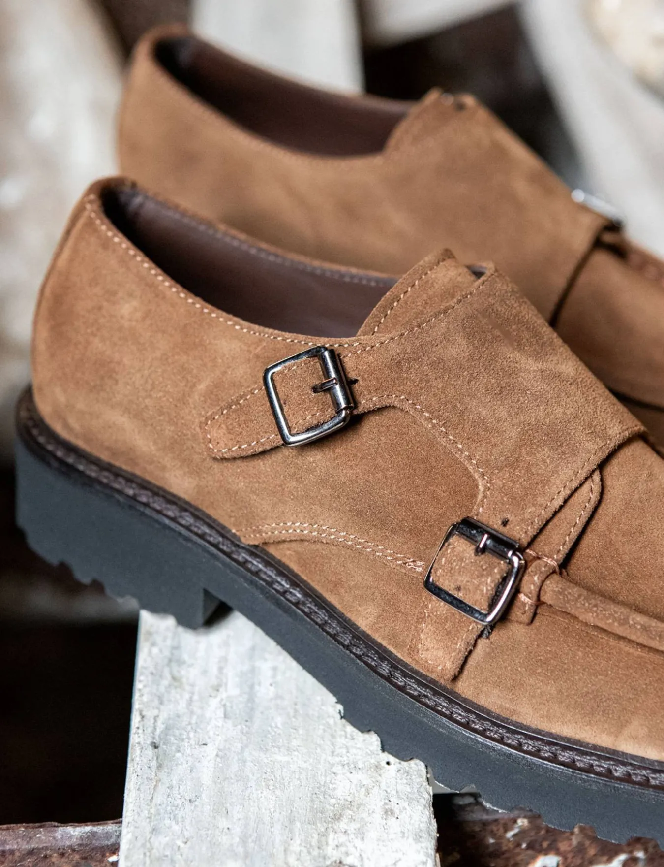 Queste scarpe presentano una punta affusolata e cuciture in rilievo a mano alla norvegese, che donano un dettaglio artigianale unico.