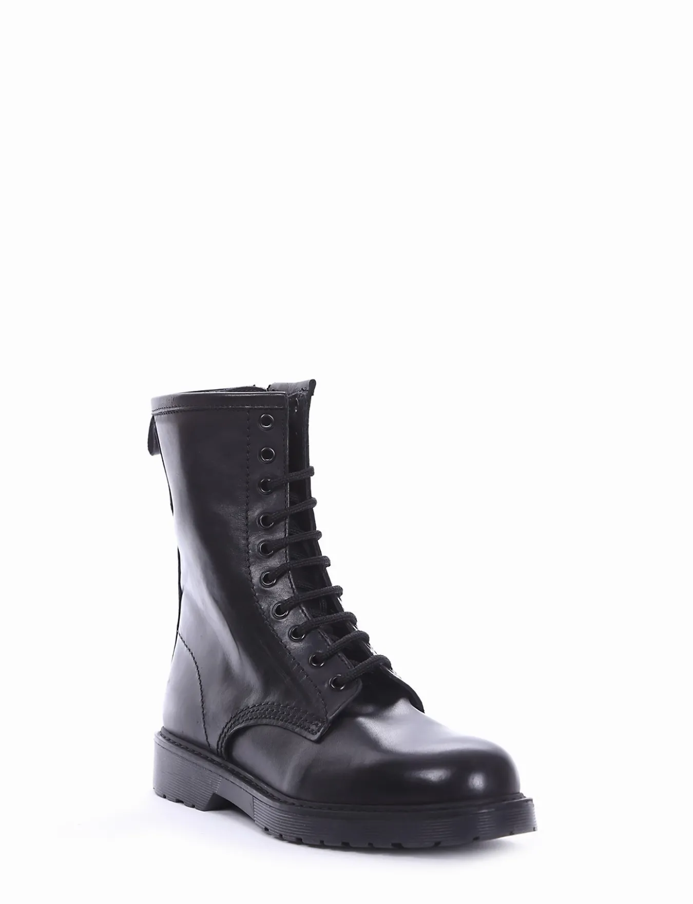 Anfibio tacco 2cm, fondo gomma e soletto interno in vera pelle. Tomaia in morbida nappa e allacciatura a 10 buchi per un classico senza tempo.