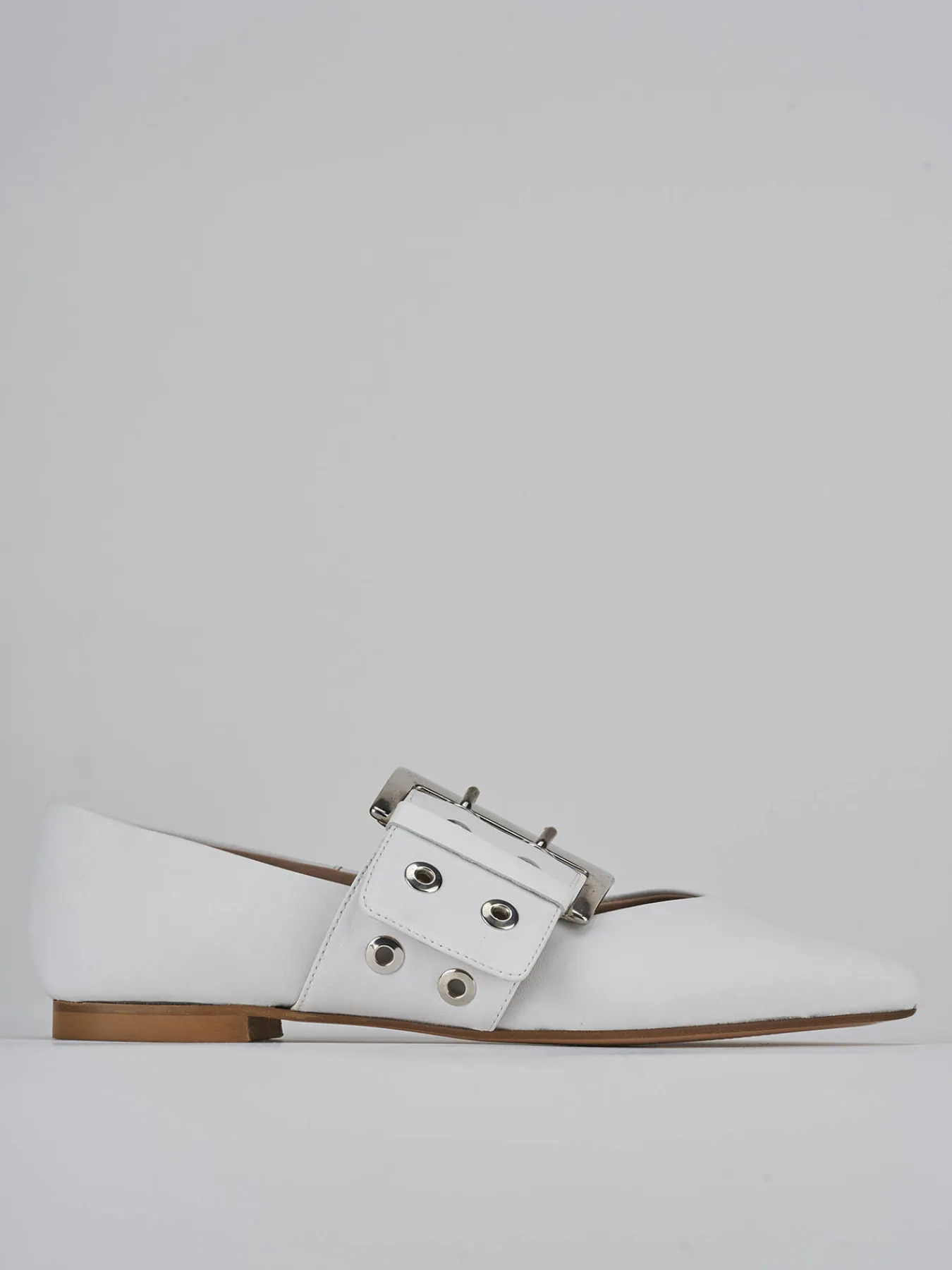Il cinturino spesso con fibbia regolabile e le borchie decorative rendono queste ballerine davvero uniche e accattivanti.