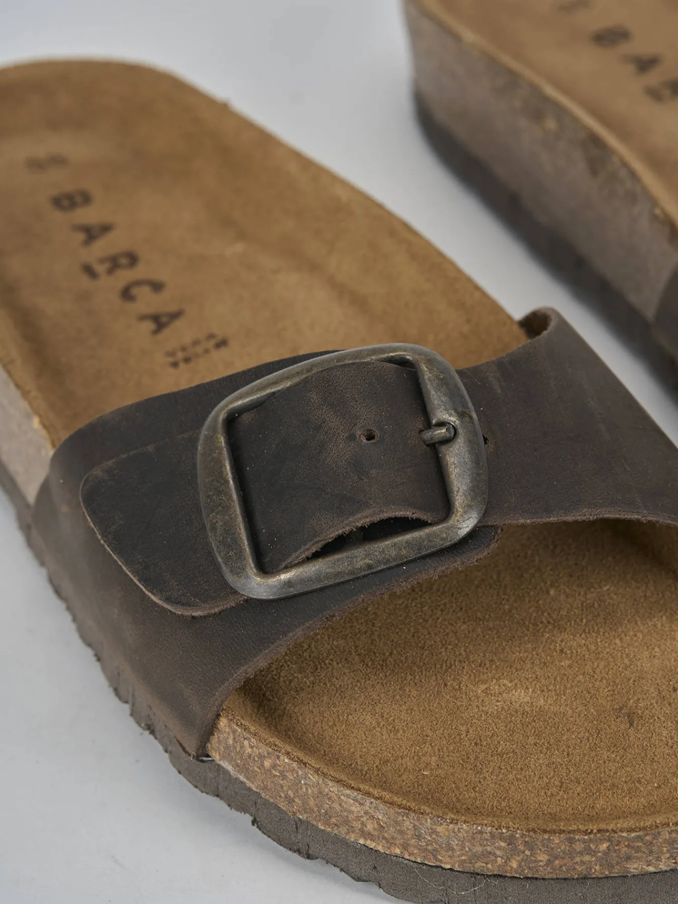 Realizzate con una tomaia in morbida pelle, queste ciabatte presentano una fascia unica sulla parte anteriore del piede, arricchita da una fibbia regolabile che aggiunge un tocco di classe.