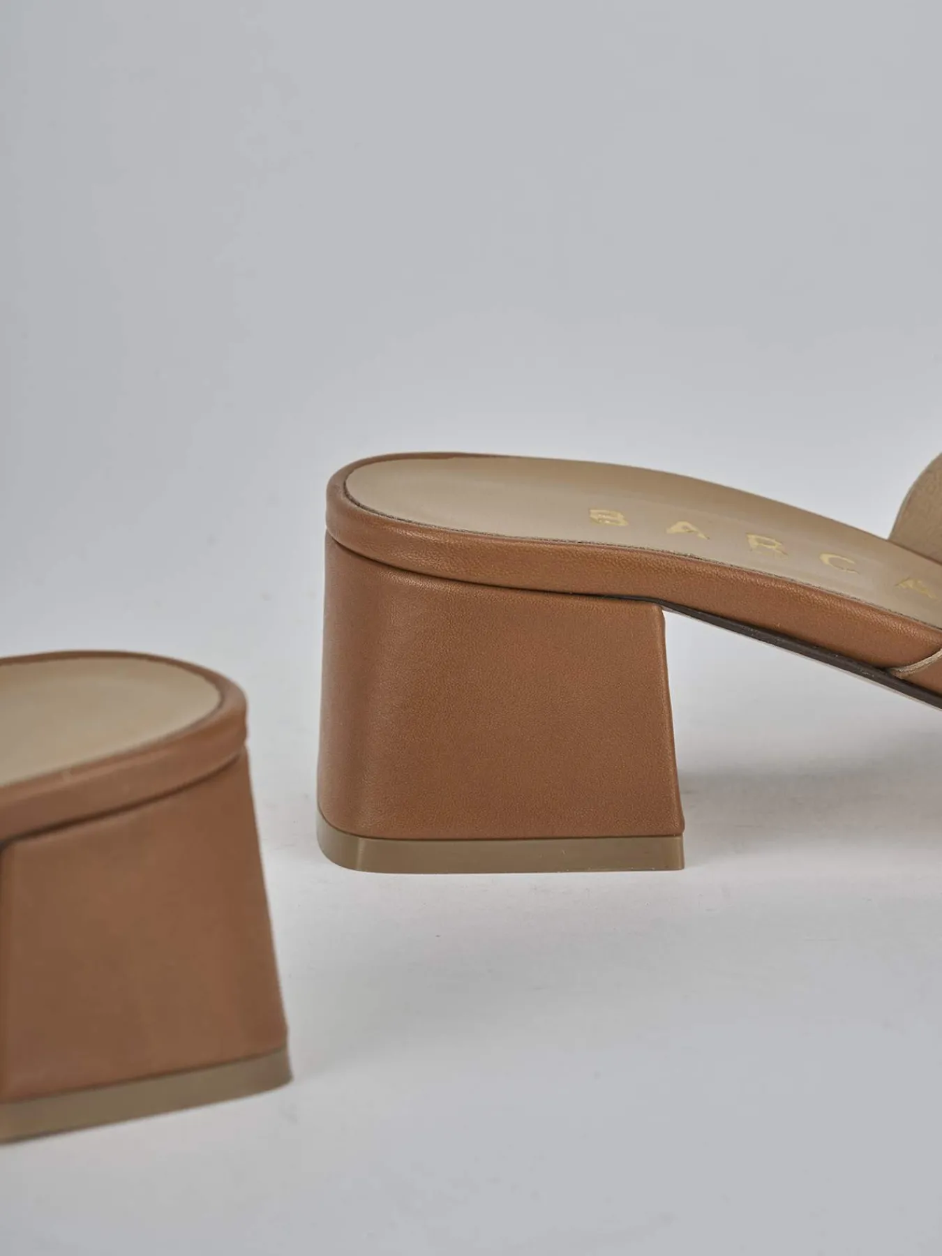Ciabatta tacco 5 cm fondo in cuoio e soletto interno in vera pelle. Tomaia in morbida pelle, punta squadrata, fascia unica centrale con laseratura fori e comodo tacco grosso. Per un maggior comfort.