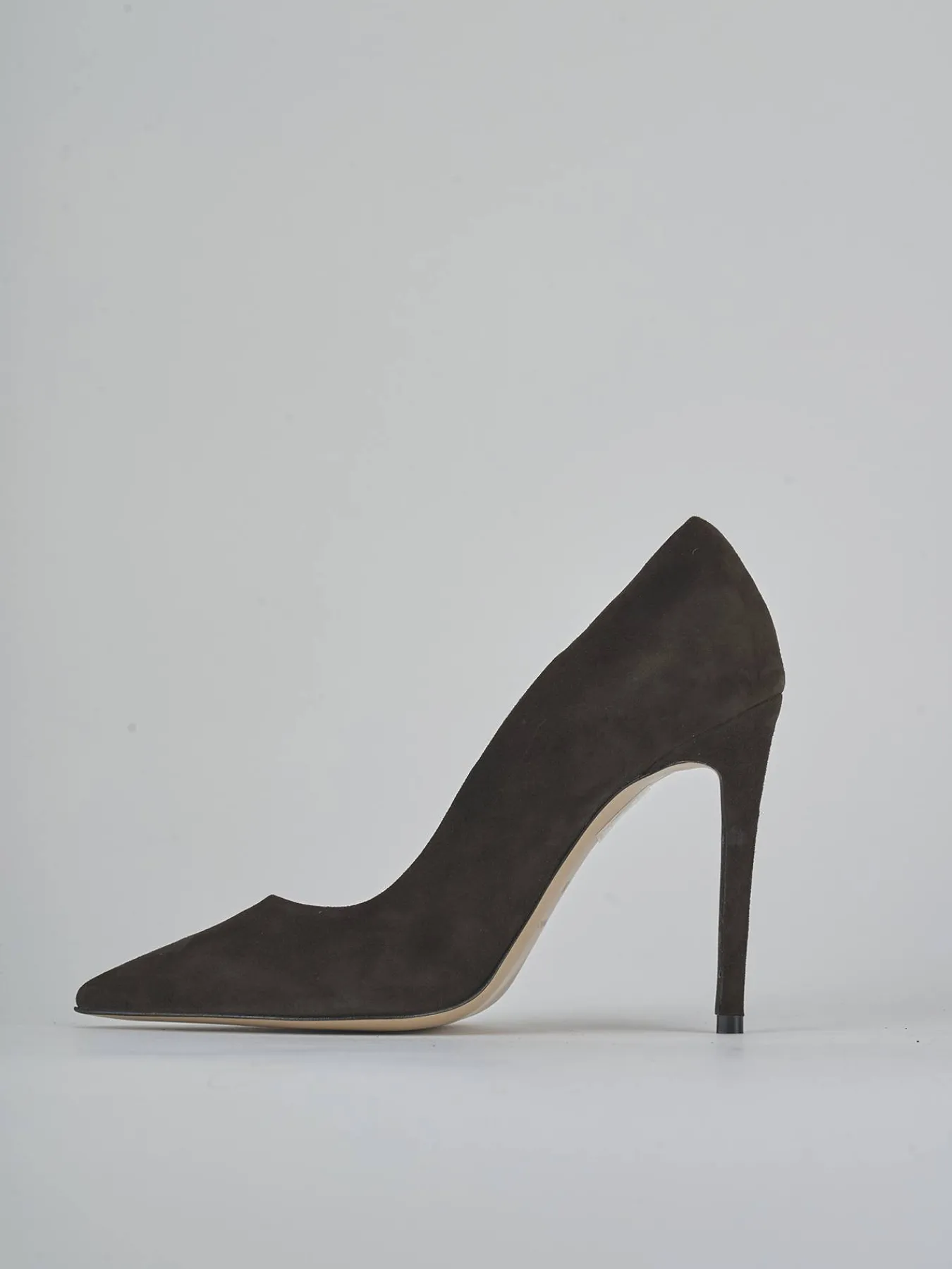 La tomaia, realizzata in morbido camoscio, offre un comfort avvolgente, mentre la punta sfilata e lo scollo a ‘U’ aggiungono una nota sofisticata.