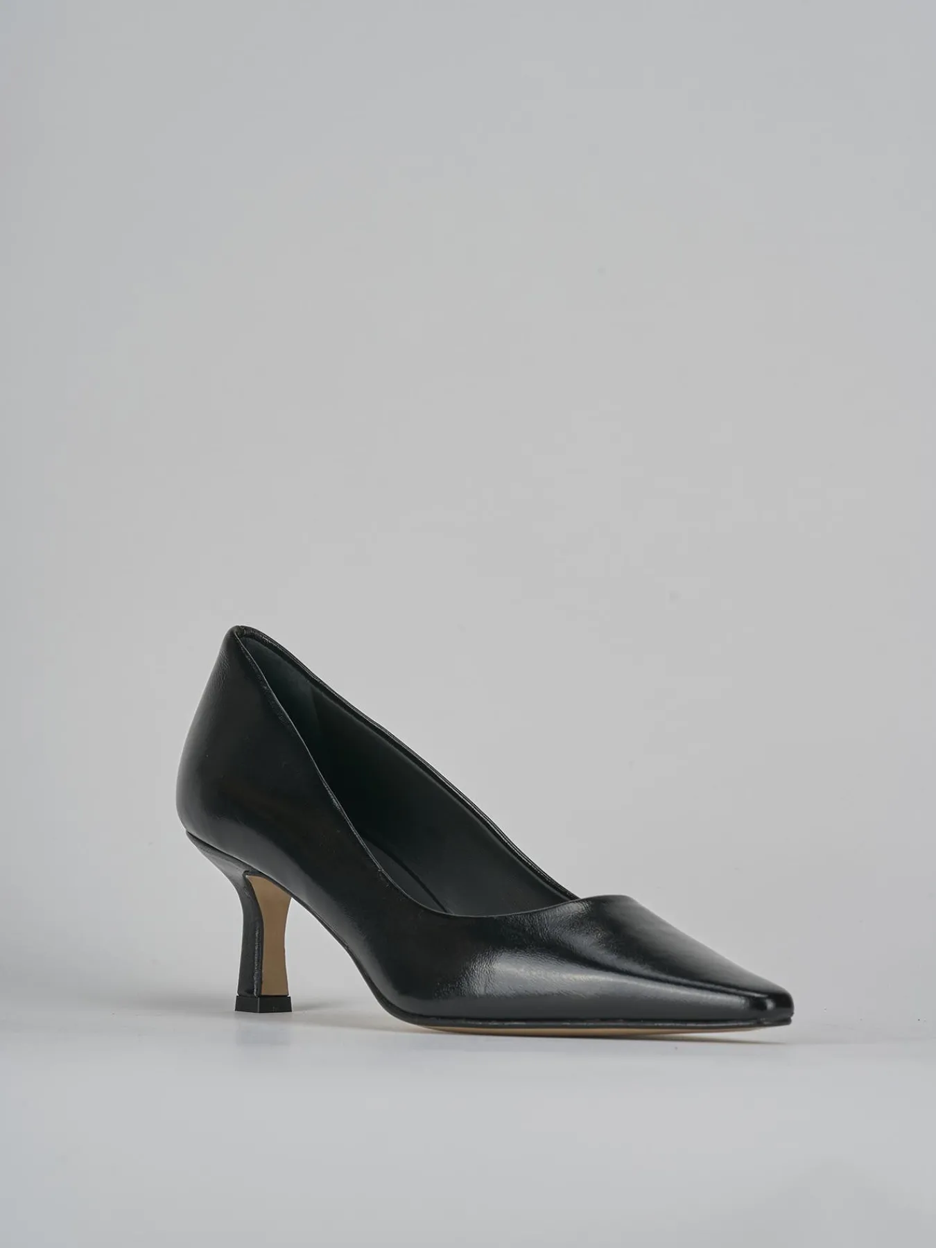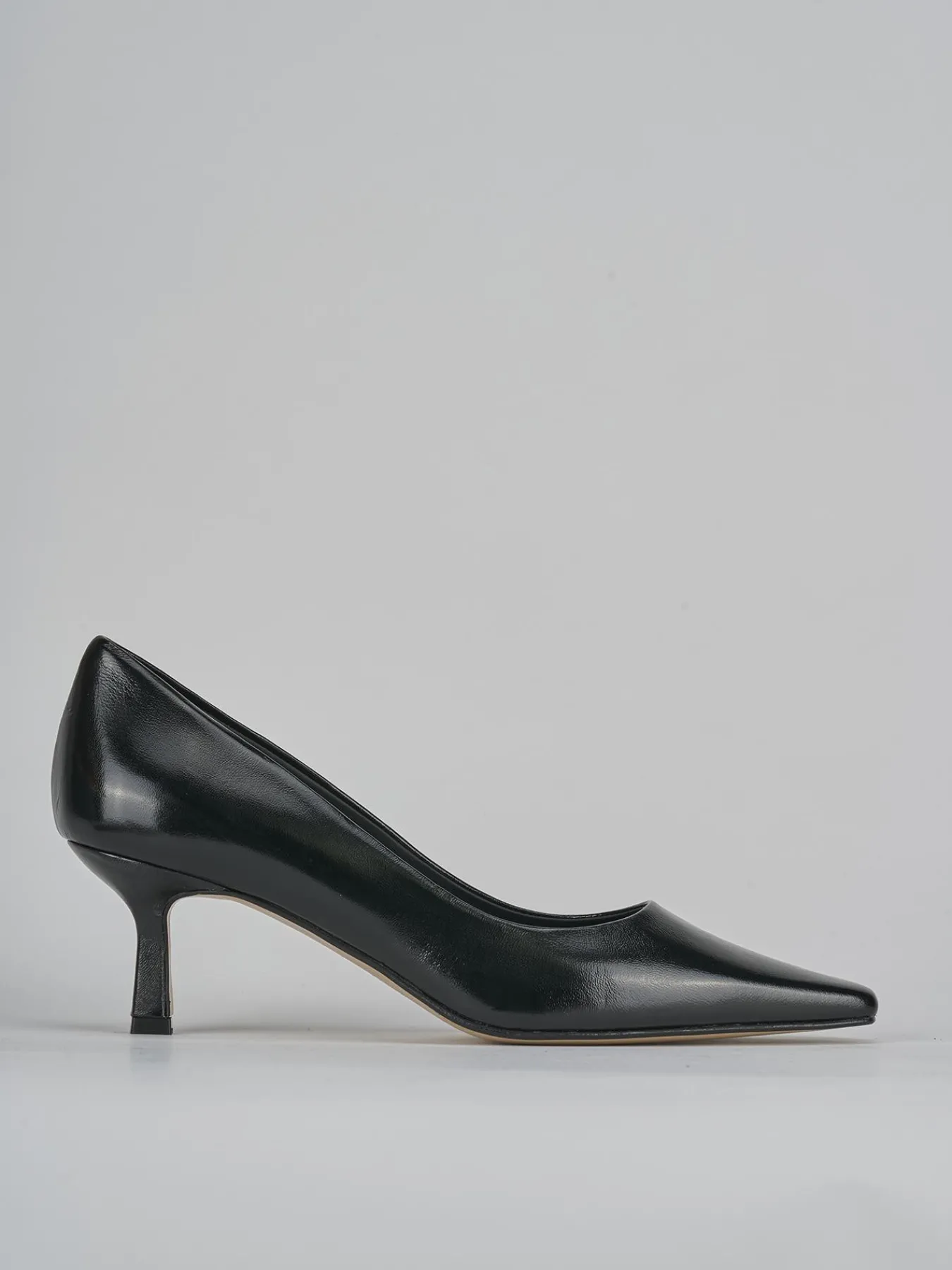 La tomaia in morbida pelle effetto verniciato dona un tocco di lucentezza, mentre la punta sfilata leggermente squadrata aggiunge un dettaglio moderno e chic.